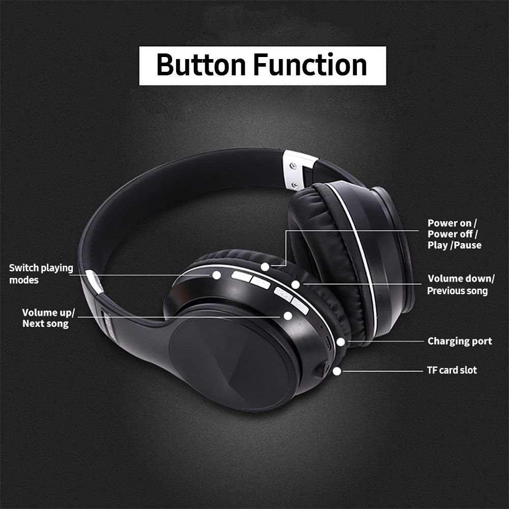 This BT 5.0 Headset supports BT connection, AUX wired connection, TF card playing and FM mode, free to switch. And you can control it at 4 buttons. Besides, it is foldable, take it anywhere.