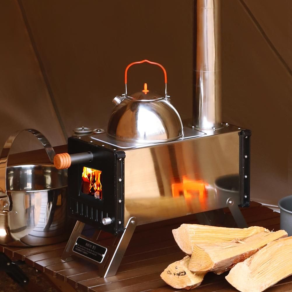 Buy Portable Camping Folding Furnace Wood Burning Furnaces Winter Outdoor Heating Cooking Kitchenware Stainless Steel Firewood Cooking Tool with Chimney Pipes for Hiking in Nigeria