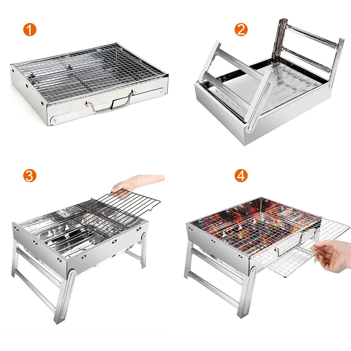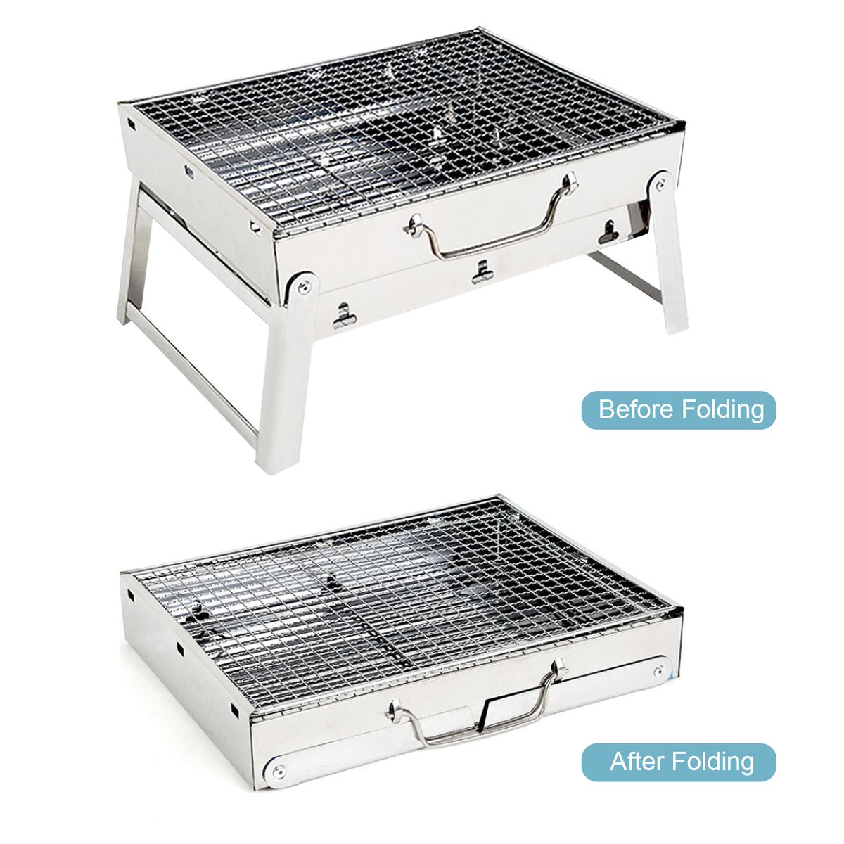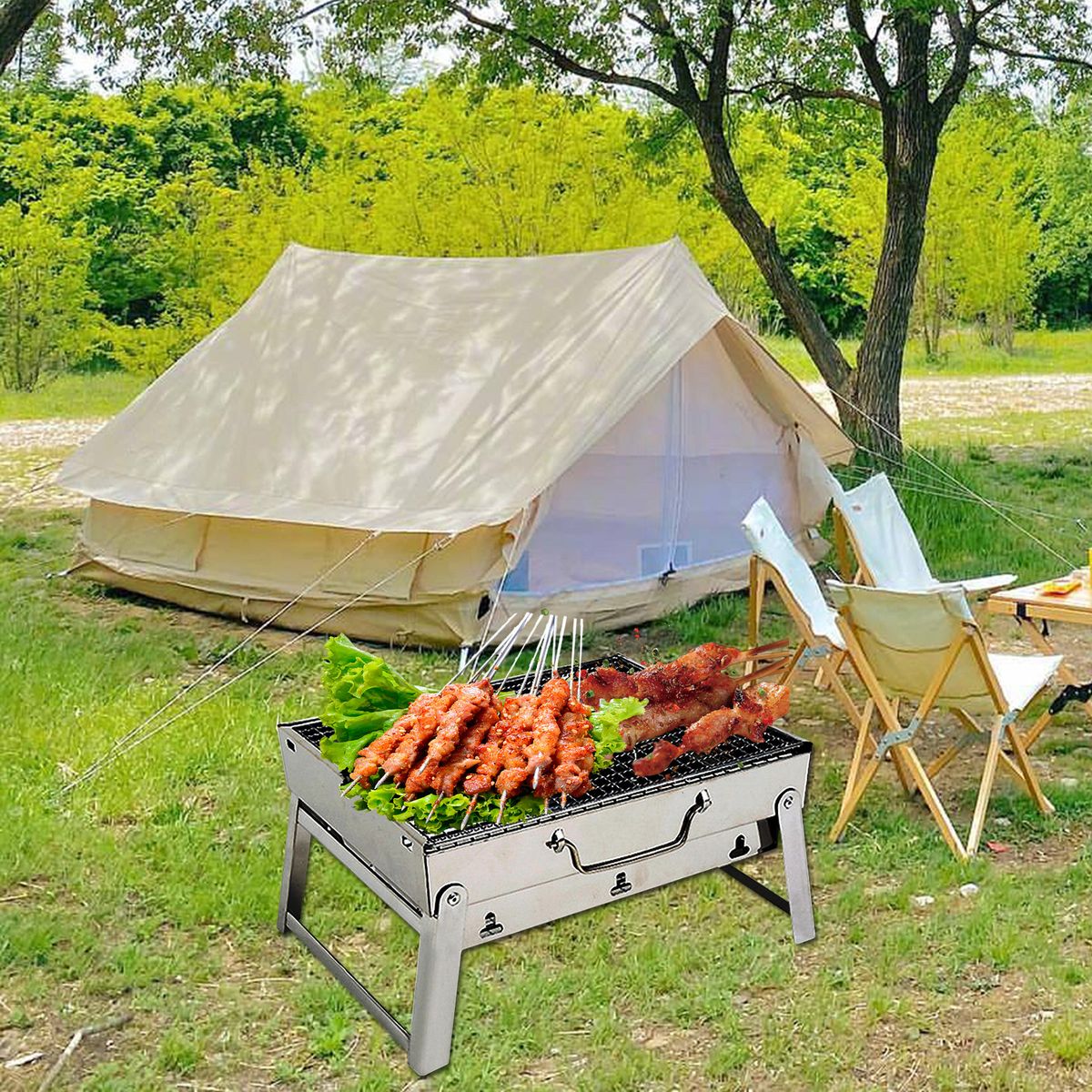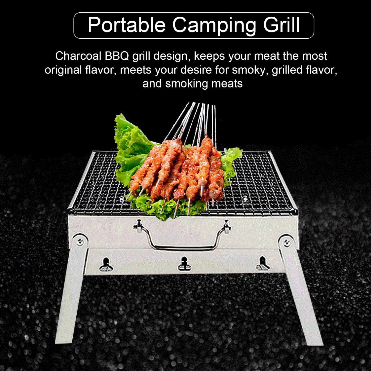 This portable grill is suitable for 3-5 people. Charcoal BBQ grill design, keeps your meat the most original flavor, meets your desire for smoky, grilled flavor, and smoking meats. It packs flat for convenient storage and travel and quickly unfolds faster than you can build a fire. This barbecue grill is perfect for camping, and picnics.