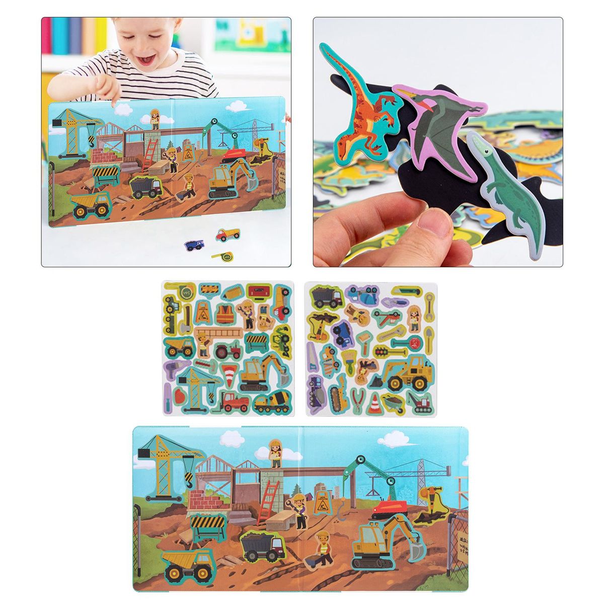 scene cognitive puzzle, with dinosaur scene, construction site scene, and animal world scene optional.