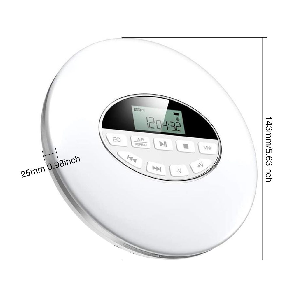 1X Lotorasia Portable CD Player Compact Car Support TF Card Round 3.5mm Jack Battery Powered Anti Skip Small Music USB AUX