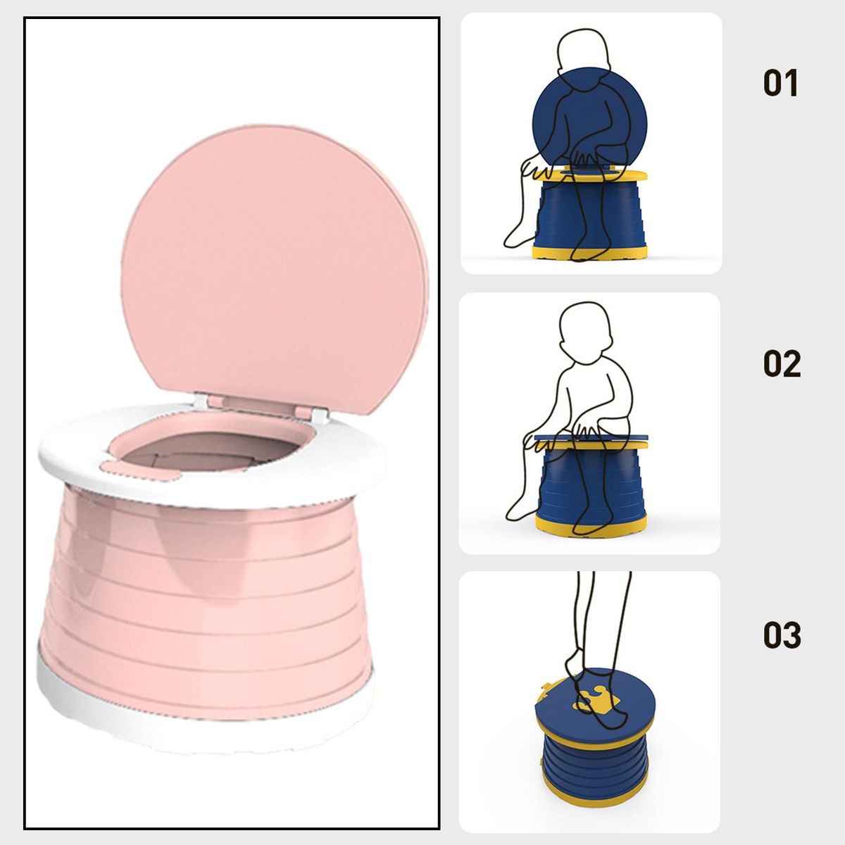 Foldable: children's travel bedpan can be used as a bedpan, seat or footstool, and a bedpan training seat for boys and girls.
