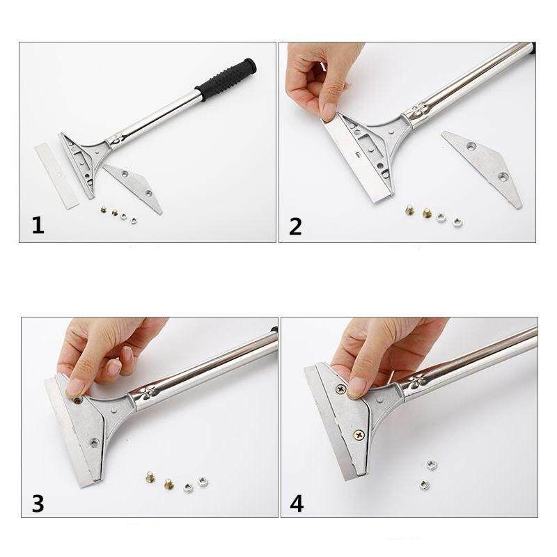 100% High quality It can easily remove all kinds of dirt glass, marble, ceramic tiles, sanitary ware, kitchen utensils and surfaces, stains, decoration pollution Uses: Angle scraper; glass ; adhesive residue scraper; seam repair tool Product Name: adhesive residue scraper stainless steel + plastic thick design, durable Package Includes :
