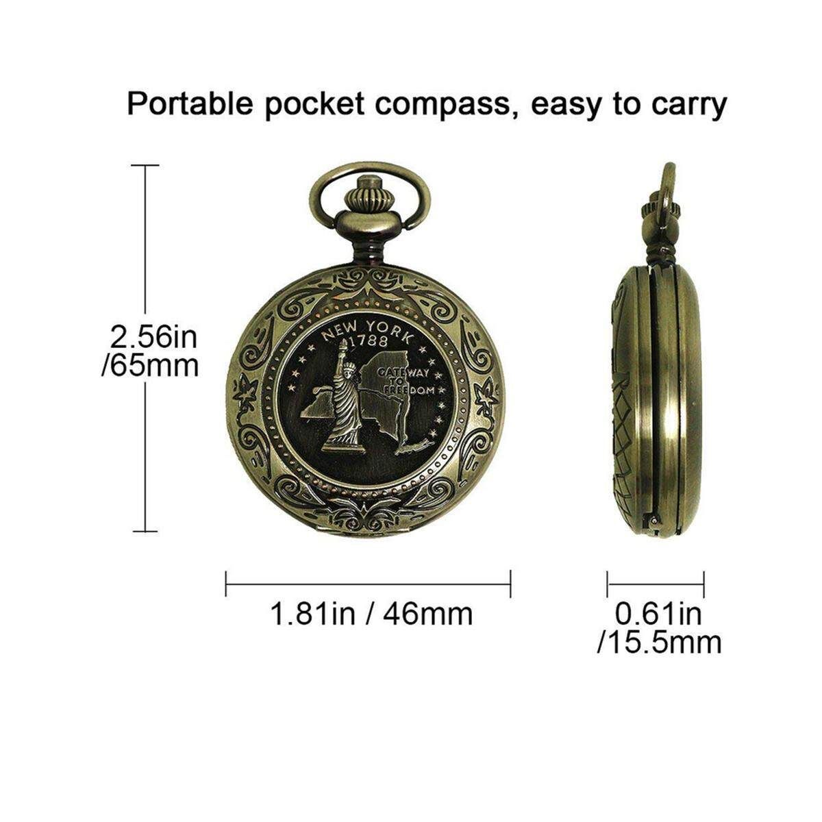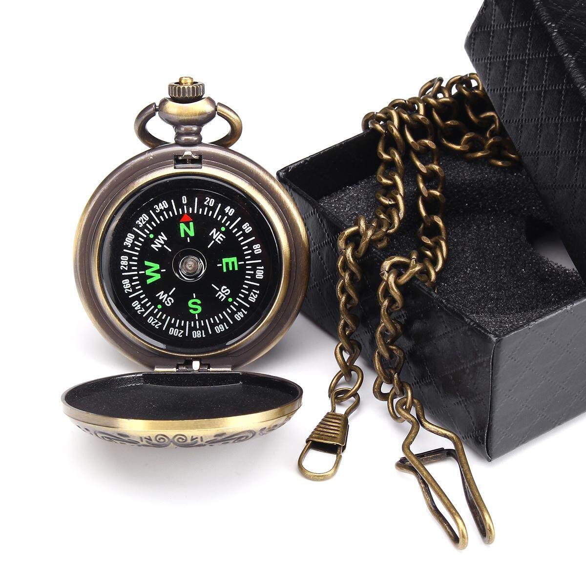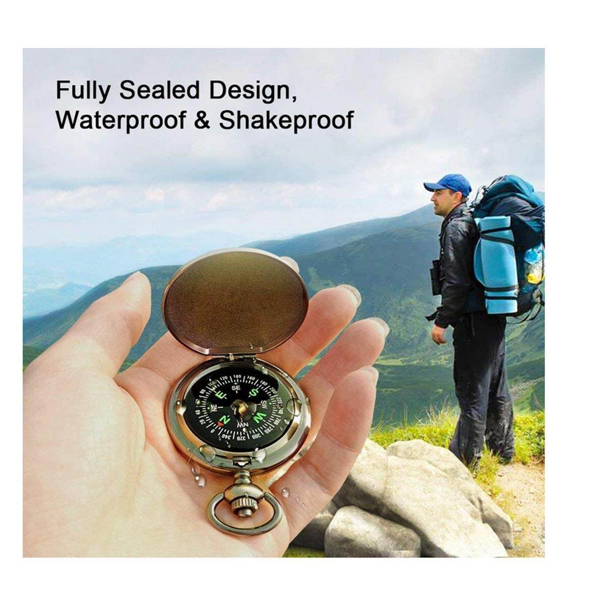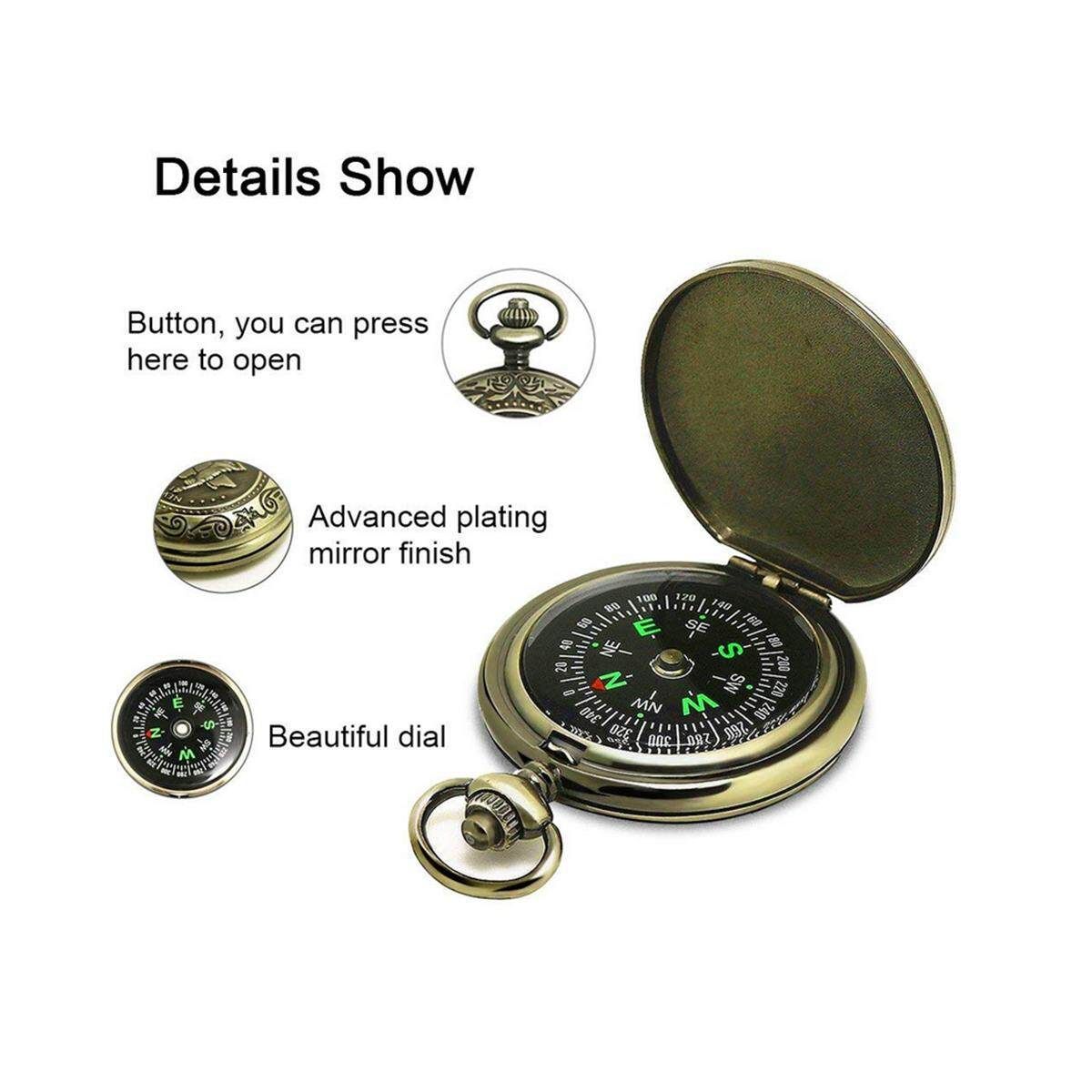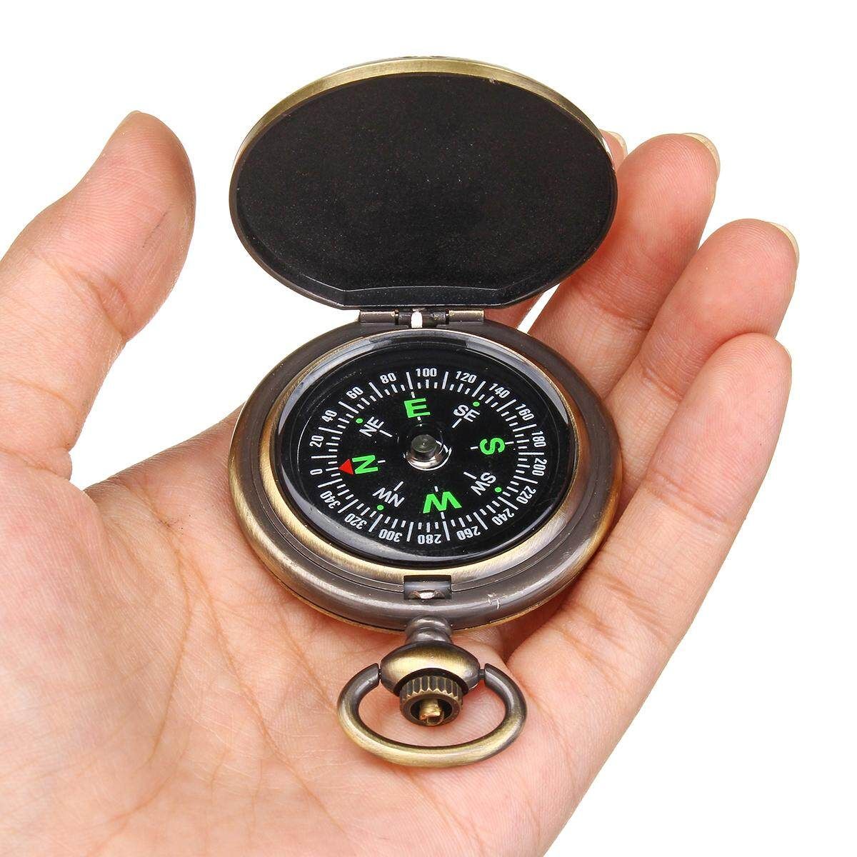Compass Outdoor, Premium Portable Brass Compass Classic Jump Cover Waterproof Hiking Compass Pocket Watch Flip-Open Navigation Tools with Luminescent Numerals for Camping Hiking FEATURE: 【Fast and Accurate Navigation】Our compass is of good quality and good workmanship. The waterproof compass has high sensitivity and stability, differentiates the direction and repairs your position, giving you the right direction and time. 【Portable and Unique Design】The compass is made of a durable alloy material with a different surface on each side and a refined look. With the included metal ring, you can attach it to the belt or attach it to the road with a lanyard. 【Durable and Comfortable Experience】The compass is made of a high strength metal body that is rugged and lightweight, making it the perfect travel companion. Unique design with multiple functions: basic orientation, layout scheme, azimuth, deflection angle and object width measurement. 【Multiple functions and applications】 Our compass is a perfect outdoor navigation device, ideal for emergency, camping, hiking, cycling, hunting, treasure hunts and outdoor activities. It can help you find your sense of direction quickly and accurately. It can be used as a gift for friends, kids, family vacations, birthdays, weddings, Christmas etc. Or as interior. It can also be used to detect the presence of magnetic fields in watches. 【We are business Tanseible and 100% Satisfaction Guarantee! 】? brand products may be sold in Tanseible stores. It is not allowed to sell to another retailer. To protect your rights please pay attention to Tanseible when purchasing. If you are not 100% satisfied with our products, you will receive a or resend immediately and easily. SPECIFICATION: Includes : no Use scene: camping and outdoor Material: Zinc Alloy Weight: 58g Size: 65 * 46 * 15.5 cm PACKAGE INCLUDES: 1× compass 1× metal chain 1× gift box