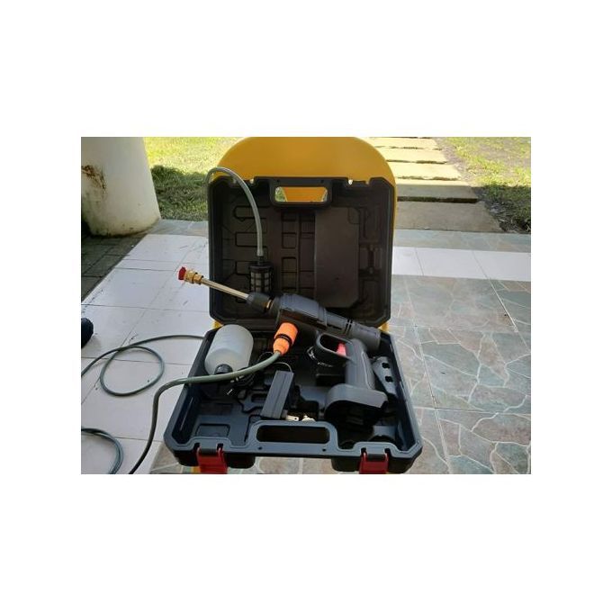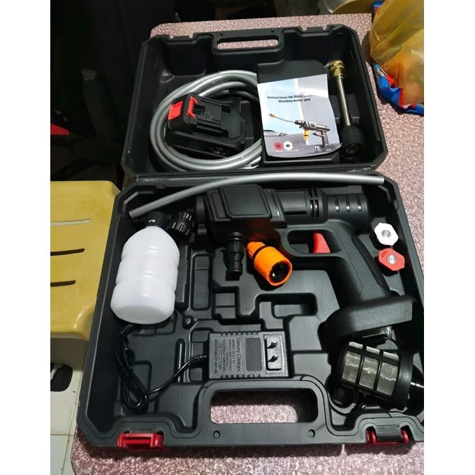 Features and Details:-- Multiple functions: the portable pressure washer is suitable for all kinds of car, motorcycle and bicycle cleaning and maintenance, which can easily water the garden and clean the roof, boat, floors, pools, windows, doors.- Pressure Washer: The handheld pressure washer adopts intelligent induction frequency conversion pure copper core motor, longer service life, 200W high power, faster water output, stronger and more powerful. Maximum working pressure of 435 PSI with maximum water inlet pressure of 0.5 MPA, the water can be pressed at a distance of 13-16 feet in 8 seconds, and the flow rate is 3.5L/Min.- Industrial Grade Filtration: Explosion-proof thick steel wire flexible tube, work in winter, and anti-break in summer, with long service life and smooth touch, stainless steel fine filter impurities, particles, residue leaves, mud in water, work can be done anywhere.- Easy to Assemble and Convenient Storage: Our cordless high pressure cleaner is an assembled, cordless product that is easy to assemble, disassemble and carry.- Lightweight, cordless and unrestricted: With cordless rechargeable design, it is not limited by power supply, and can be easily carried and used outdoors.