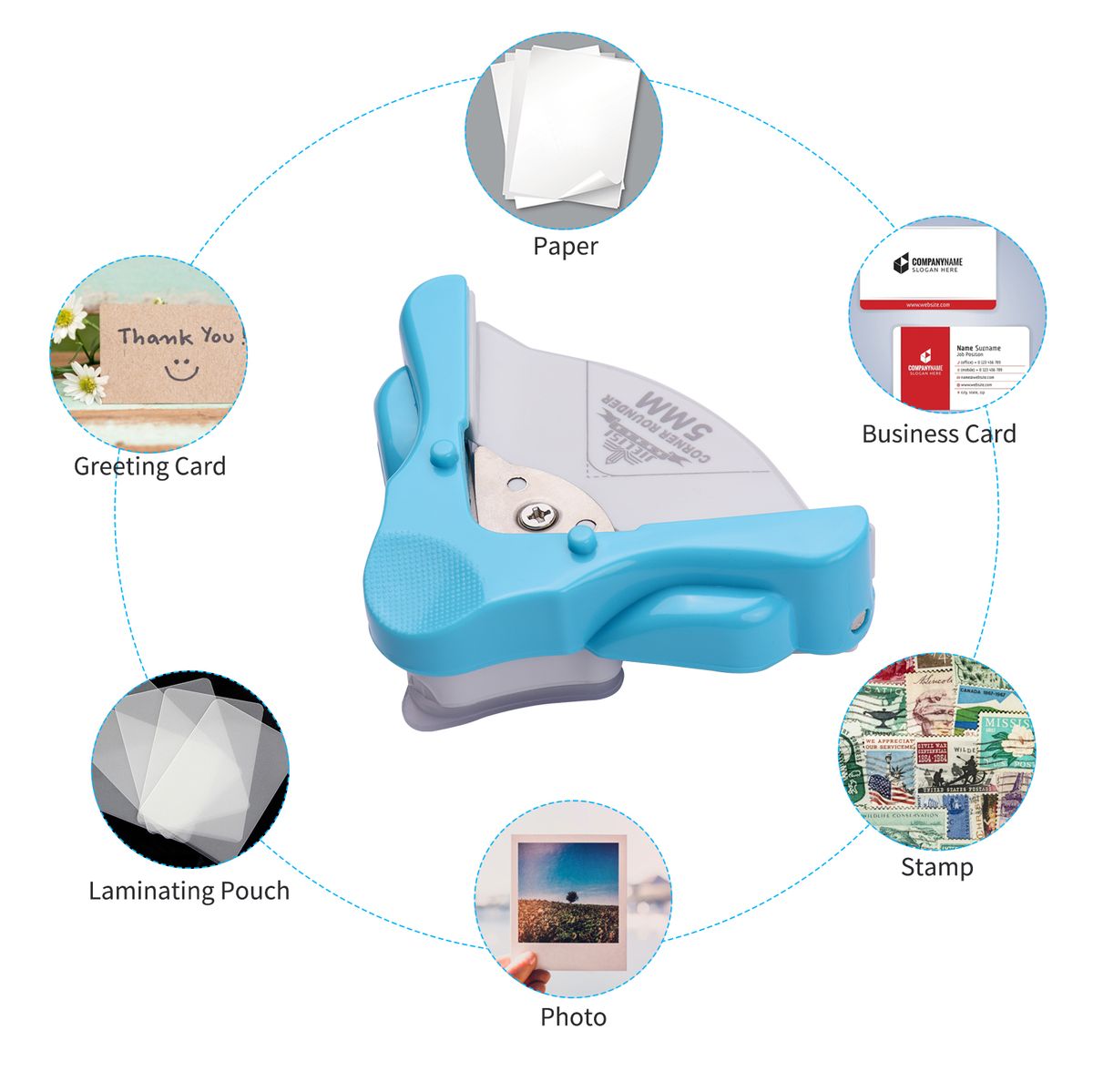 Feature:R5 corner rounder for cutting sharp corners.