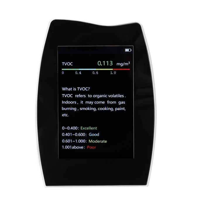 Can detect CO2, TVOC, HCHO, temperature and humidity, and can also set and diaplay time.