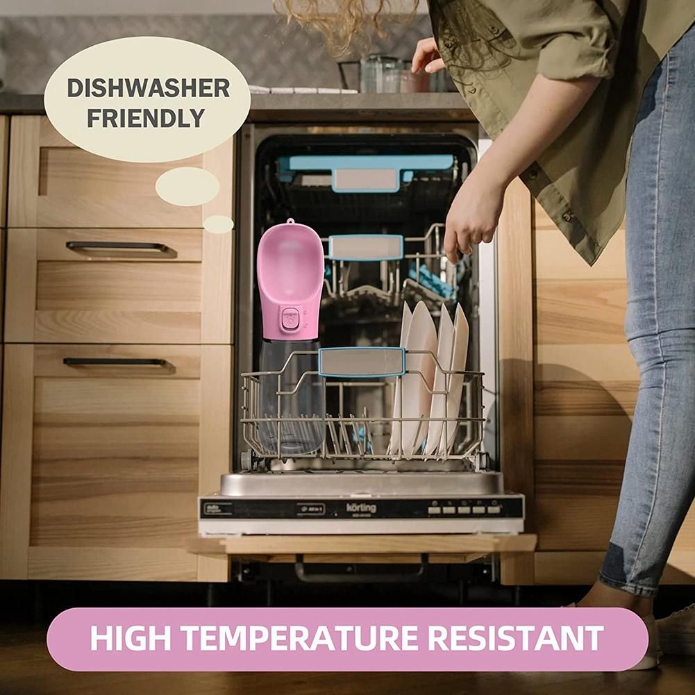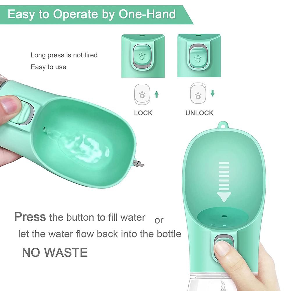 [LEAK PROOF] Silica seal ring inside the bottle body and lock button design make sure the dog water bottle doesn't leak at all. You can rest assured that it won't get your bag wet.