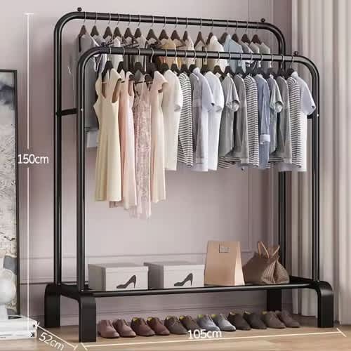Buy Portable Double Garment Rack With Shelves - Metal in Nigeria