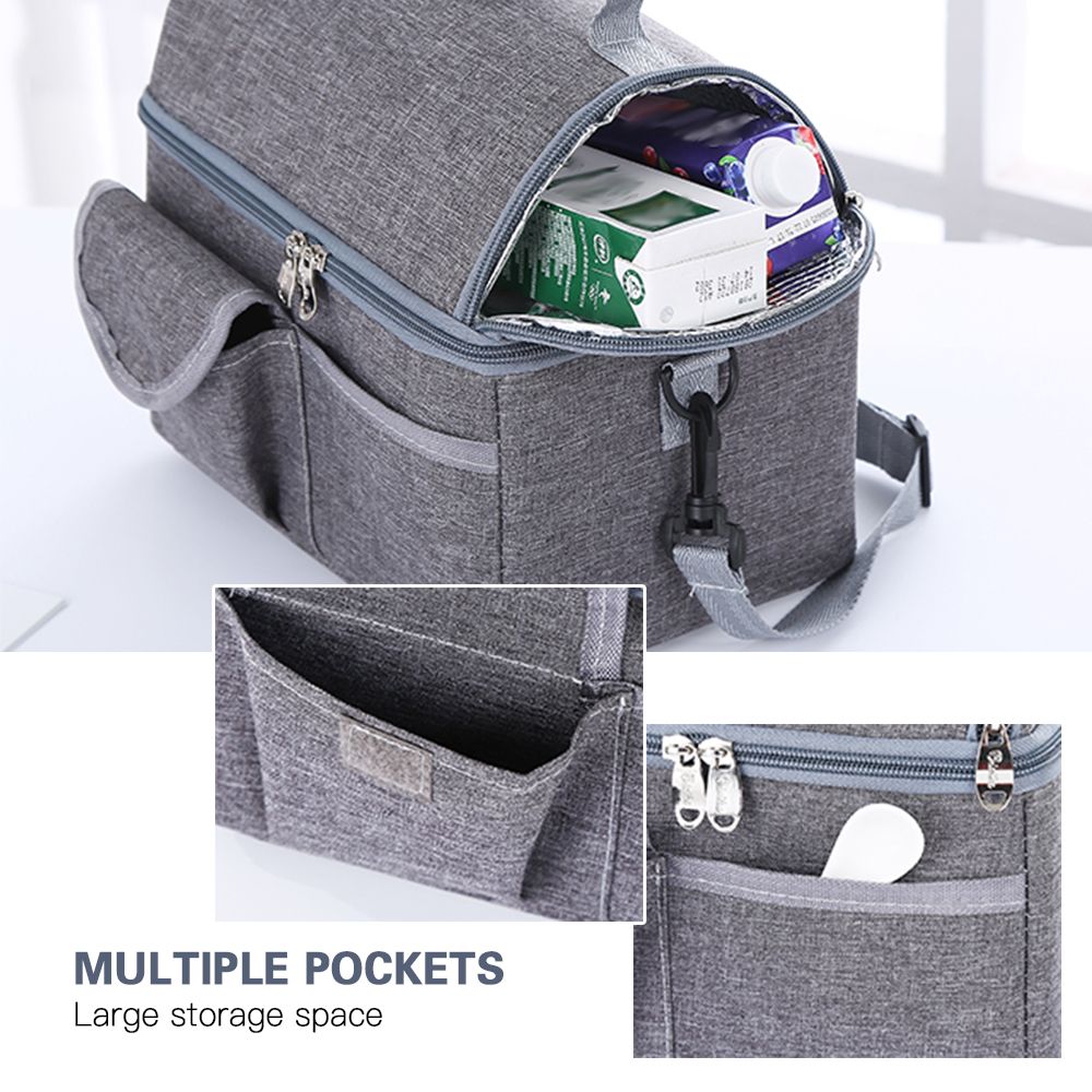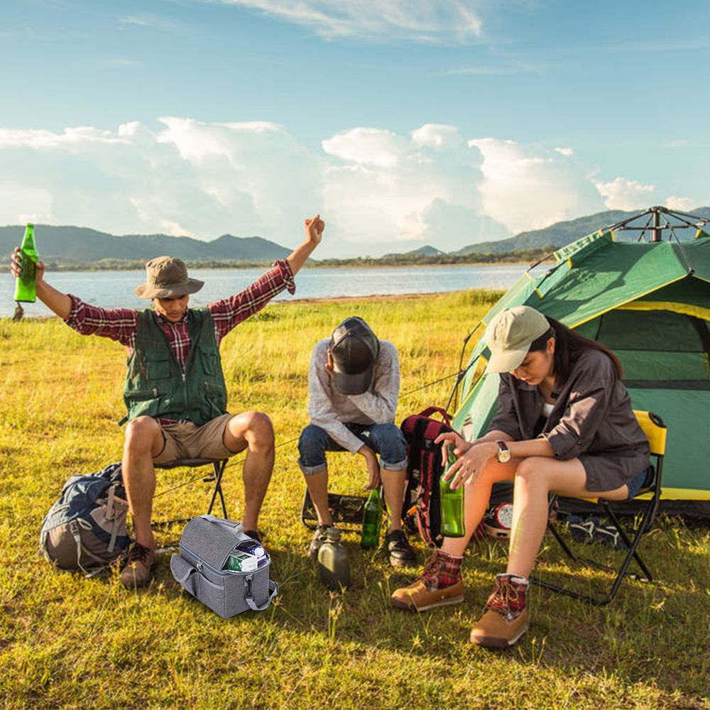 This insulated bag can help keep your food warm or beverage cool. It is great for camping, hiking, picnic, BBQ, shopping, etc.