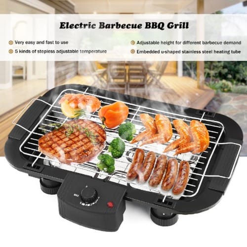 High quality iron electrophoresis barbecue grill, rustless and durable.5 kinds of adjustable temperature control, satisfy your desired temperature for different food.Superior quality of temperature controller, Automatic power off when exceeding the rated temperature.Specially designed big grill net with adjustable height, perfect for different barbecue demand.Stainless steel save-all and drip tray to collect oil residue, convenient for cleaning.Embedded u-shaped stainless steel heating tube - Heat is more uniform and food is more tasty.With scald proof hand grips and heat insulation anti-skid feet, safe to use.Great for indoor dinner party activity, garden gatherings, nearby beach barbecue, etc.