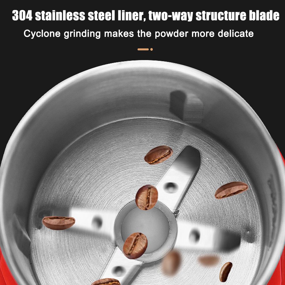 [Sturdy Material] The inner liner and blade of this electric coffee grinder are made of 304 stainless steel, which is strong, sharp and durable. Rotary grinding, the powder is more delicate.