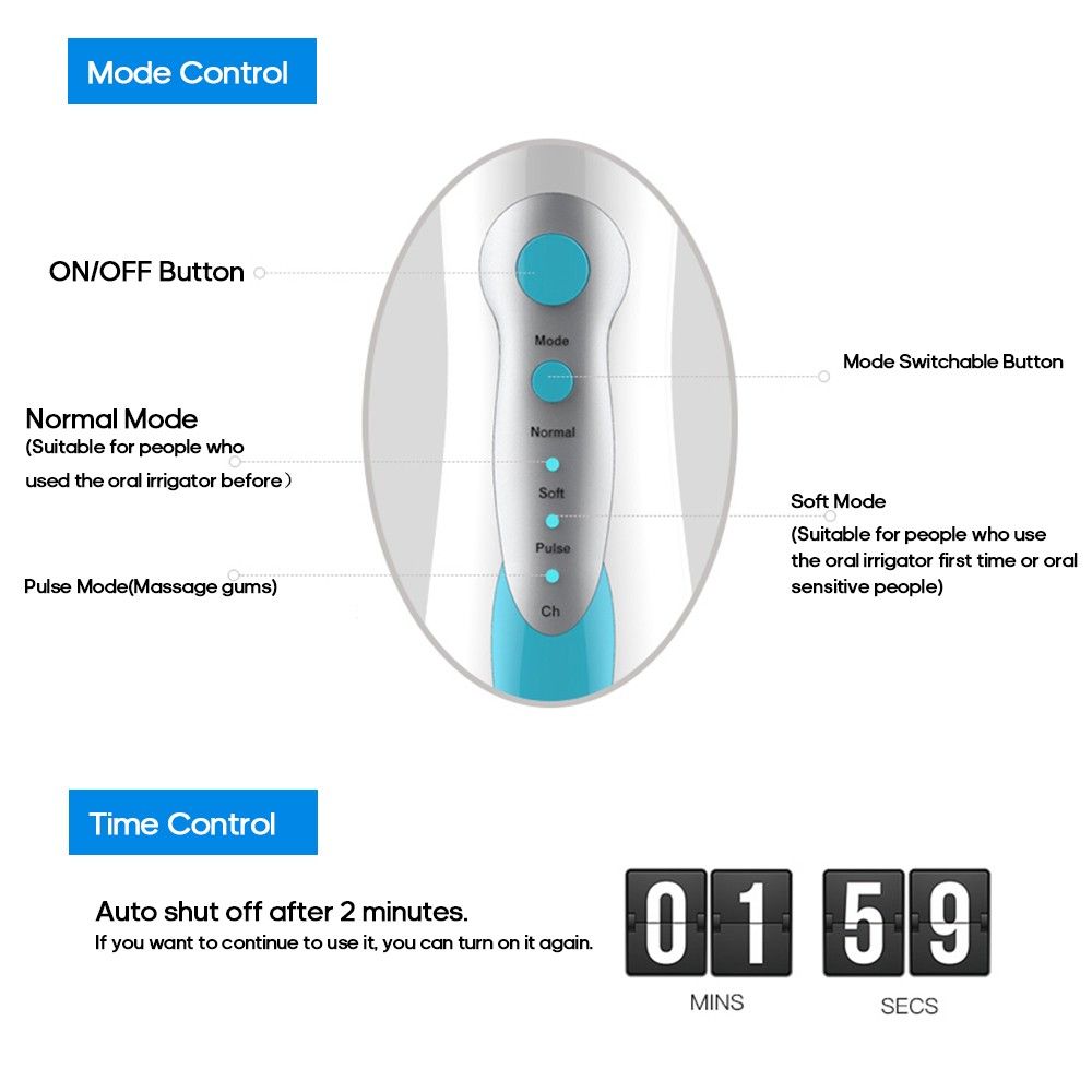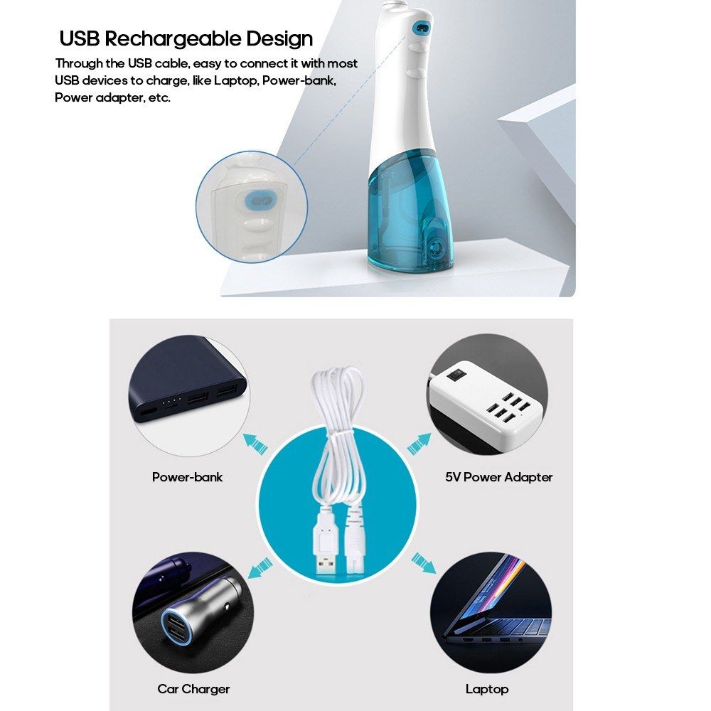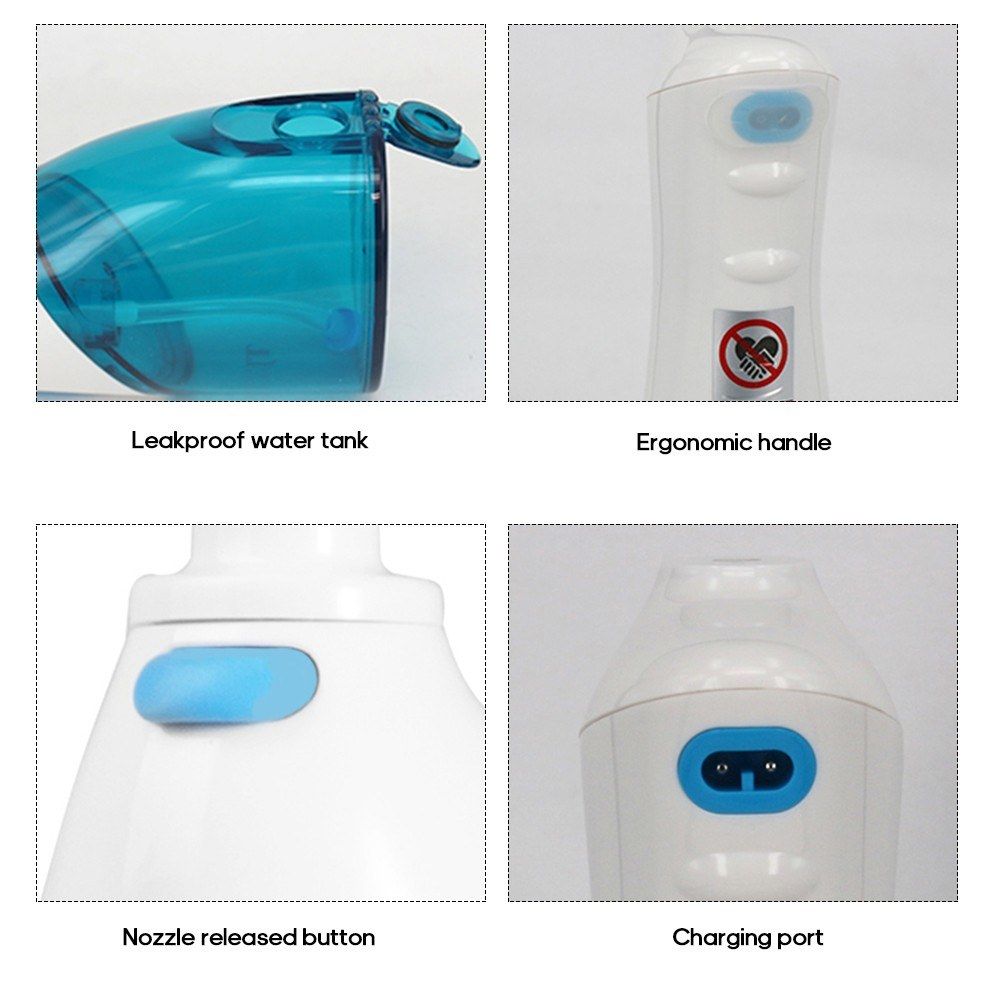 This portable oral irrigator is easy to use and it can reach the places where toothbrush cannot reach, helping remove tooth stains, debris, food residue, harmful bacteria between teeth and gumline, making your teeth clean and healthy.