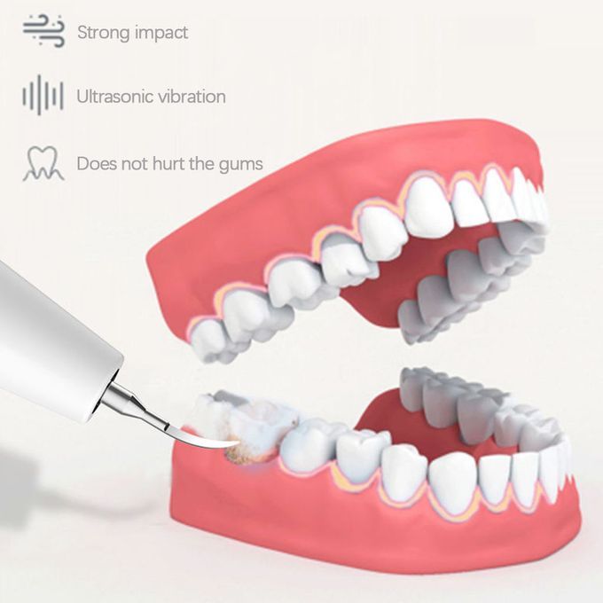 vibration and motor vibration. It won't make sound. LED Light to help clean the teeth tartar plaque stains completely