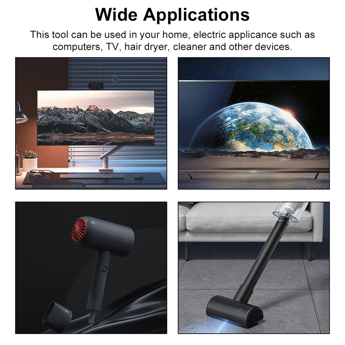 Wide Applications: This tool can be used in your home, electric appliance such as computers, TV, hair dryer, cleaner and other devices.