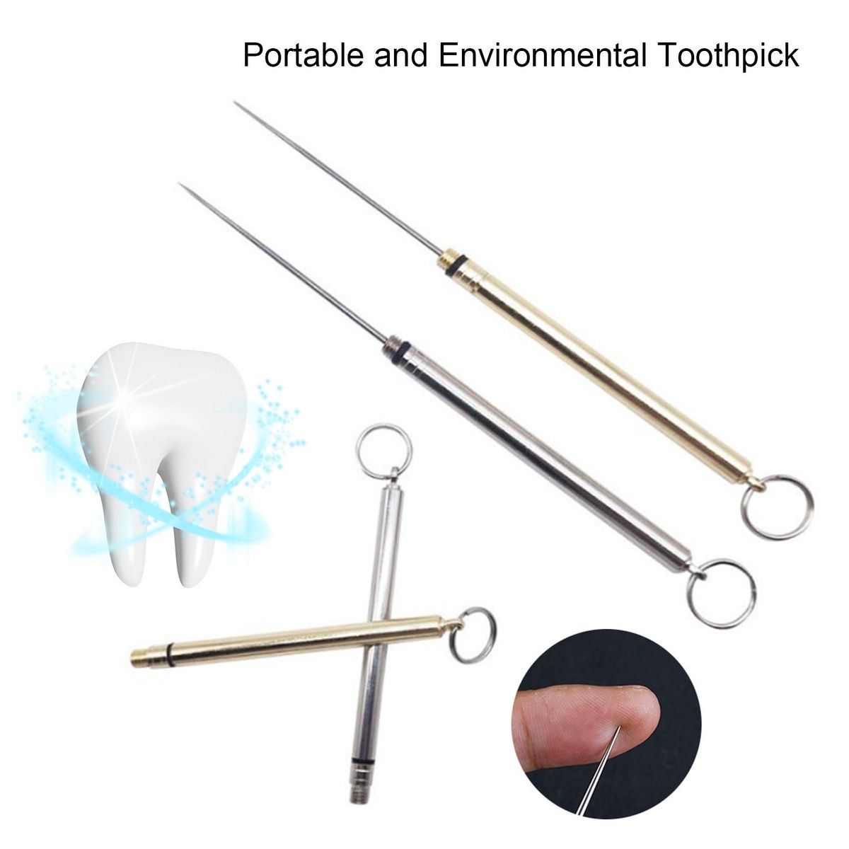 This metal toothpick is made of t-itanium, which is environmental, d-rable and portable. It is not just a toothpick, and you can also use it to eat fruit and so on.