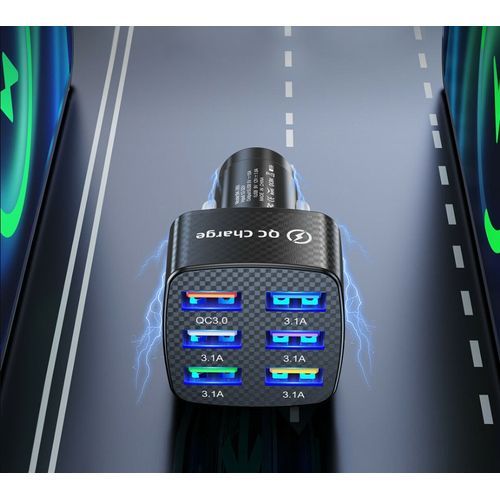Multi Ports Car Charger, 6 USB ports include a QC3.0 port 3.1A and 5 ports total of 3.1A.