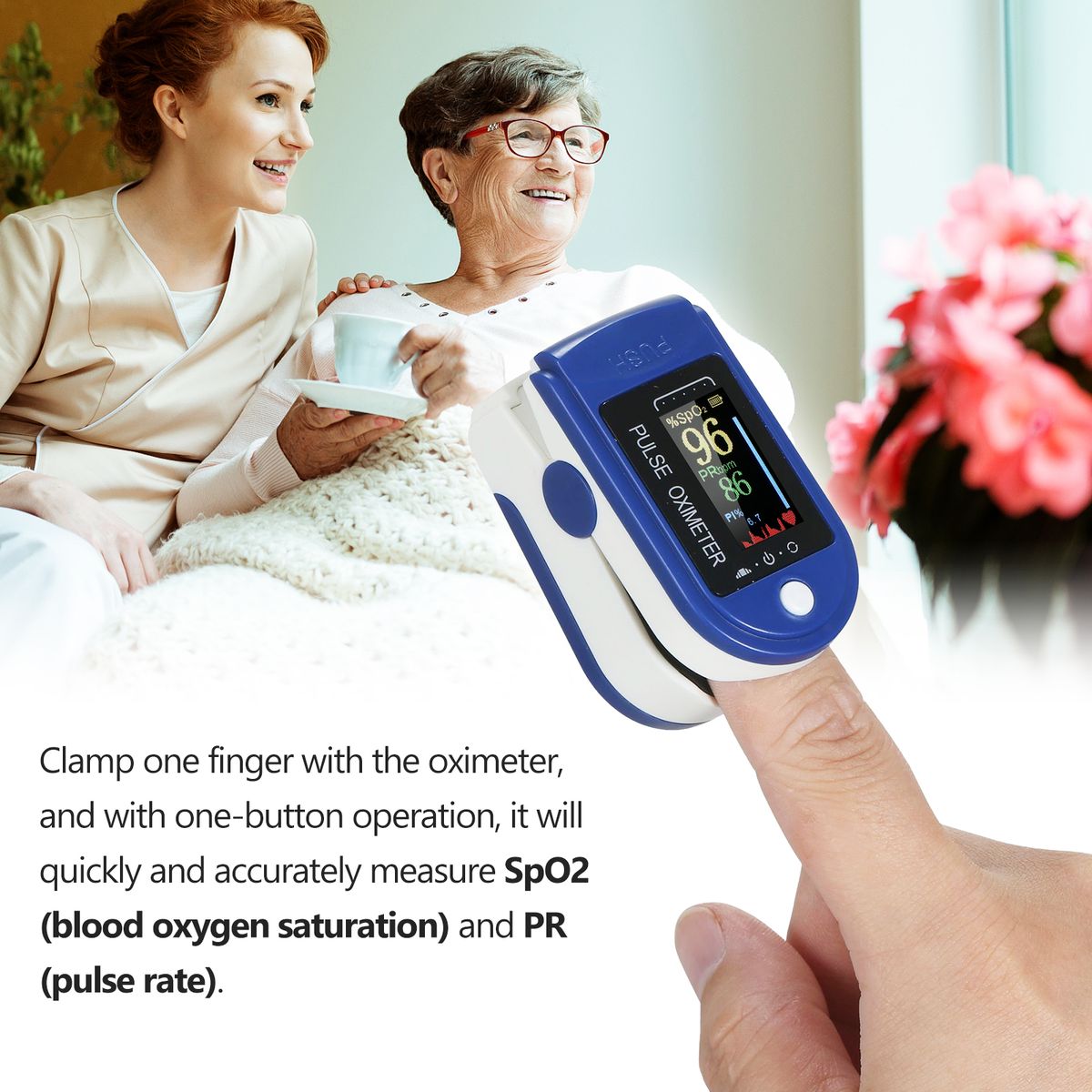 Clamp one finger with the oximeter, and with one-button operation, it will quickly and accurately measure SpO2 (blood oxygen saturation) and PR (pulse rate).
