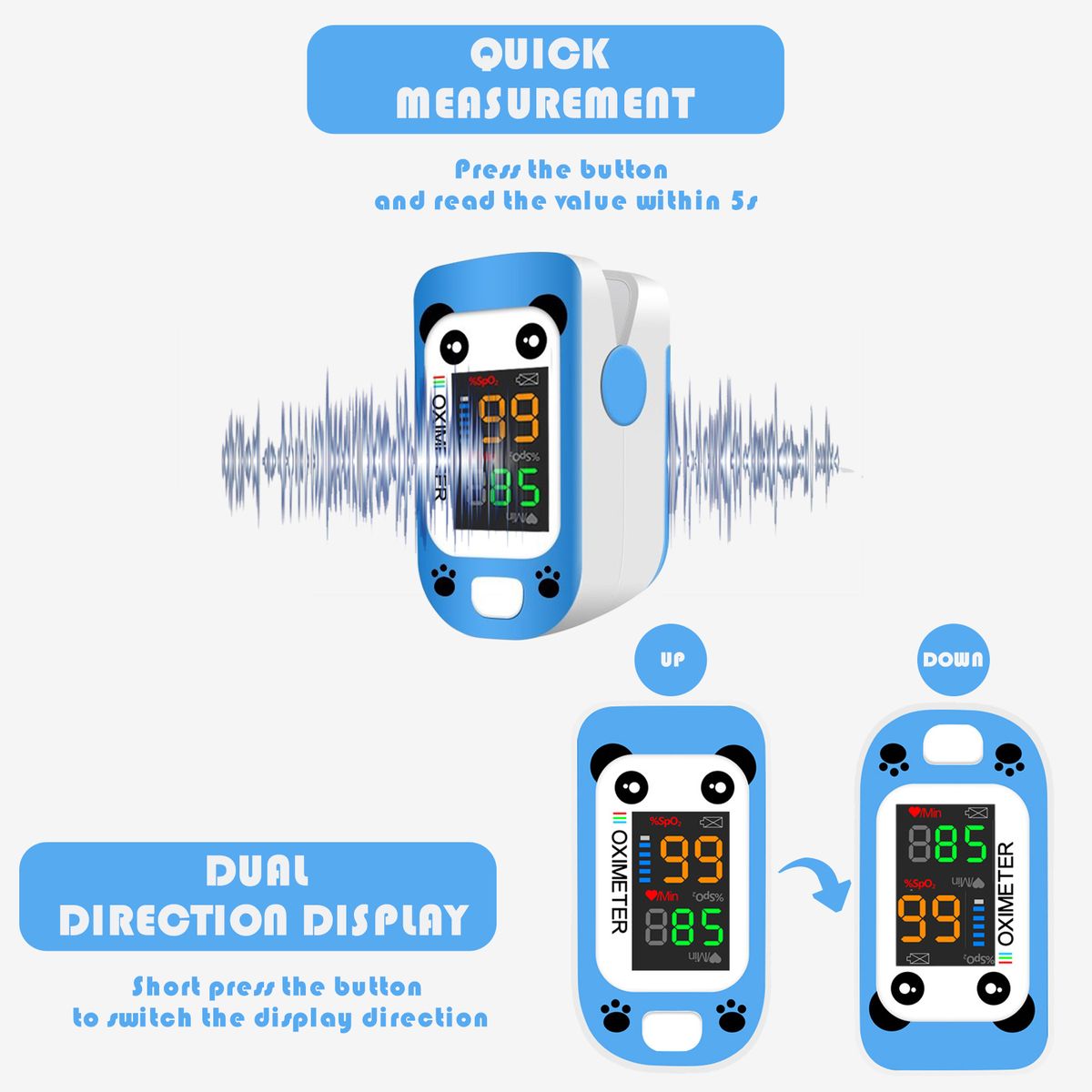 DUAL DIRECTION DISPLAY: Up amp;down direction available. Built-in direction-sensor for more convenient reading. Short press the button to switch the display directions.