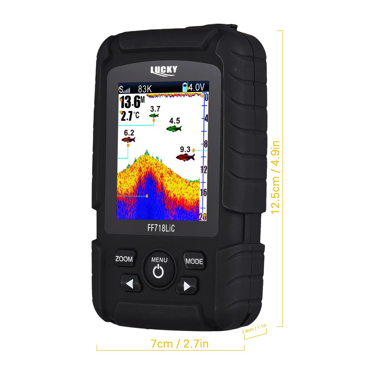 1 x Fish Finder,1 x Transducer with Cable,1 x USB Cable,1 x Charger Plug,1 x Car Charger,1 x Neck Strap,1 x Wing Nut,1 x User Manual,1 x Carry Case