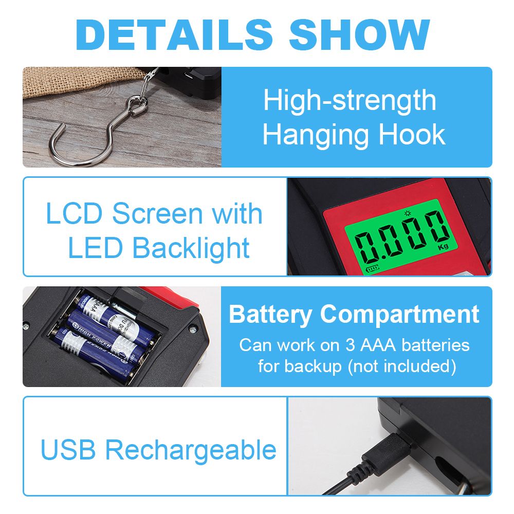 Weighing range from 20g to 50KG, with 5g of error in 0-10kg, 10g in 10kg-50kg.