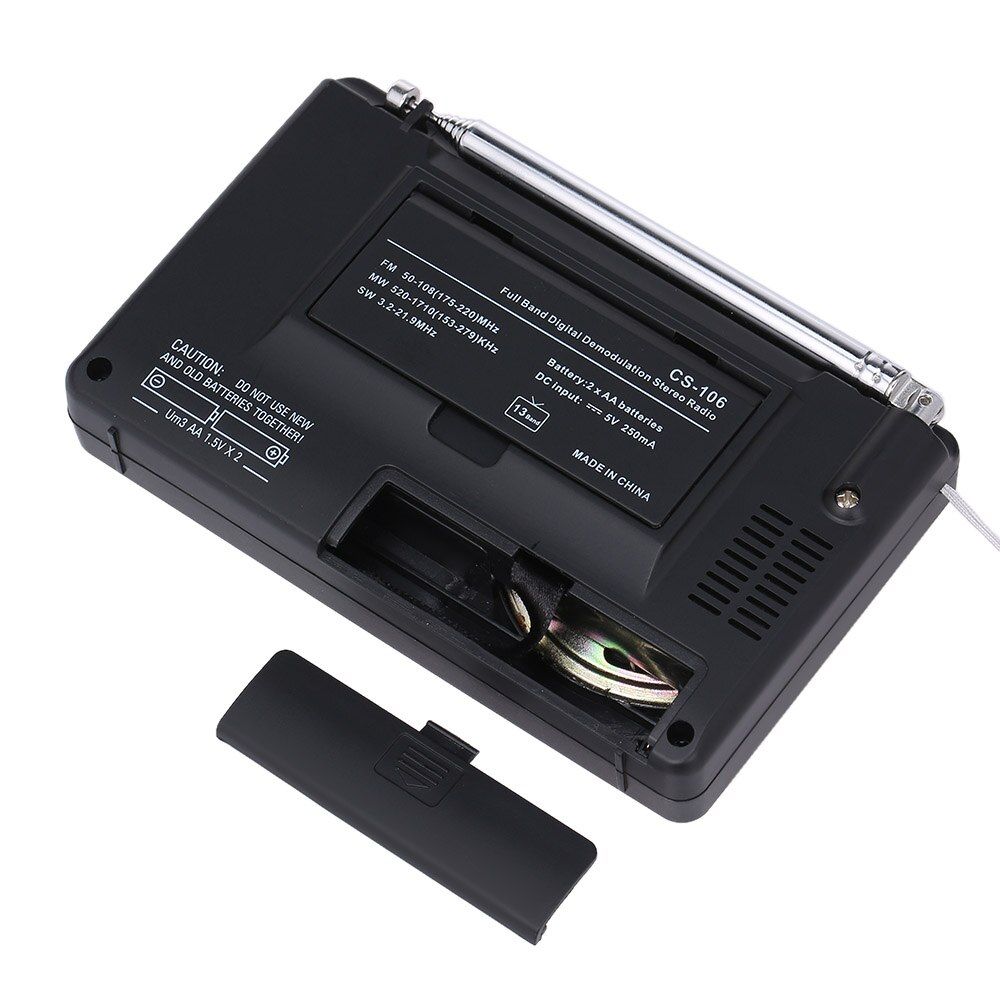 This radio has clear sound quality and is portable.This is a self-powered emergency radio that you and your family can rely on anytime, anywhere. Versatile: weather radio. Keep it with you in case you need it. This lightweight radio is an easy way to listen to important weather or news updates. Place in a suitcase or carrying case, or carry by hand using the attached lanyard. It's even small enough to carry in your pocket. Very small, equipped with a more durable and powerful, can be used for camping, backpacking, hiking or any other outdoor activity. Made of high quality fluorescent aluminum alloy, the appearance is elegant and fashionable. Good sound quality makes you addicted to your favorite music. More convenient to carry, small size, large size, travel essential. Telescopic antenna receiver adopts unique fuselage, superior in quantity and super light in weight. A very handy mini 2 band portable radio that fits easily into a shirt, jacket pocket or handbag. Listen to all your local radio stations for news, live baseball games, talk radio, music of all styles, and more. Easy to use tuning as well as combined rotation power and volume controls. There is a separate band selector switch, so you can easily listen to your favorite radio station. You can put it in your pocket for outdoor activities like camping, hiking, and boating. This can be very helpful if there is an emergency during storm or hurricane season. Radios come with built-in speakers, but they also offer standard headphone jacks as well as smart chrome-plated telescopic antennas for best performance.