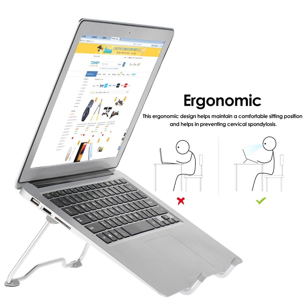 This simple device elevates your laptop so that the screen is at eye level while leaving the keyboard in a position where you can still type comfortably without needing to purchase a keyboard. Well made, with easily adjustable legs, this is really a nice simple stand you will need.