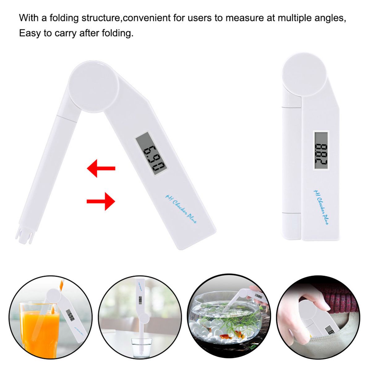 Portable water quality analyzer, foldable deisgn, high definition display screen, manual one key automatic calibration mode, the top adopts nice sealing process to prevent energy consumption in wet environment, accurate measurement, simple and quick.