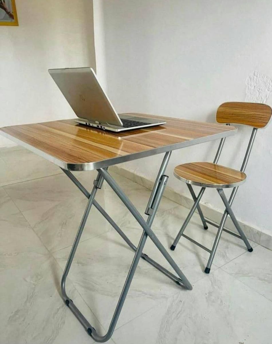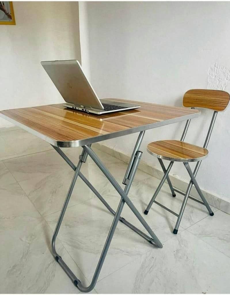 This comfortable, adjustable, foldable reading/study or laptop table and chair is made of fine formica/ivory wood and well fitted metallic stands that can be adjusted to any height to suit the comfort of the user, both the chair and the table can be folded into a flat and easy to carry shape, the light weight of the furniture makes it suitable for easy carriage to any location ,it can as well be used for outdoor functions, for offices, bedroom, sitting room, classroom, dormitory,hostel e.t.c......Due to the glossy surface it is very easy to clean and maintain, the metals does not rust and it easy to assemble and no tools required.