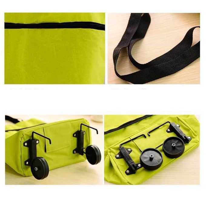 Portable Folding Sho Ing Bag Oxford Loth Pull Art Multifun Tional Sho Ing-green
