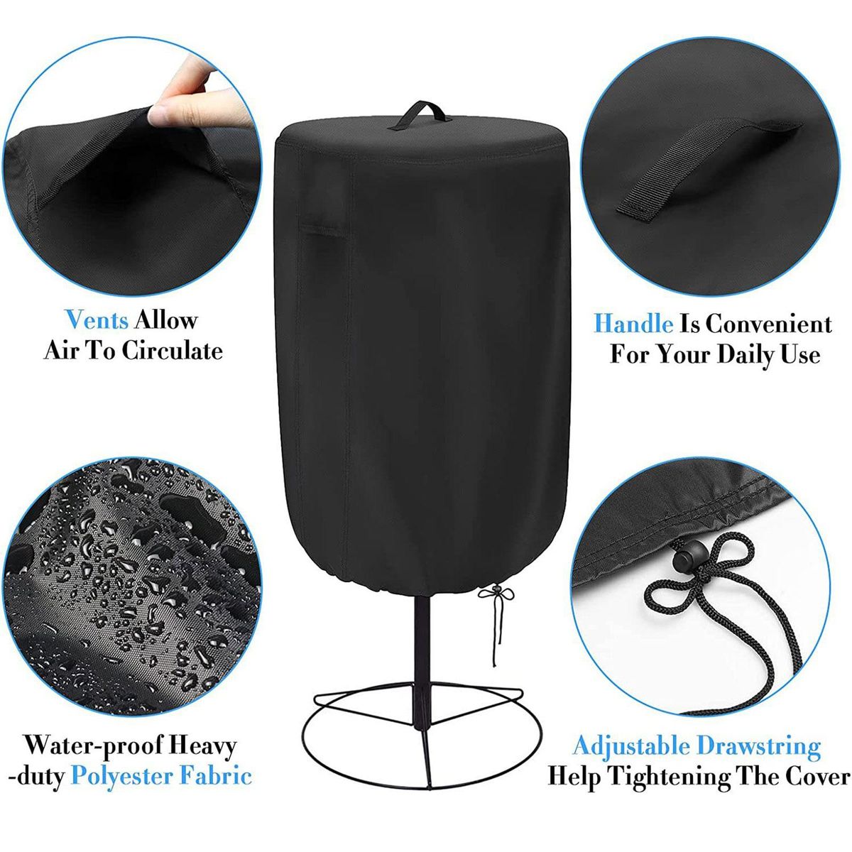 Design Features: Vents allow air to circulate. The handle on the top is convenient for your daily use. The adjustable drawstring rope can help tighten the cover. Make your Golf Disc basket better protected.