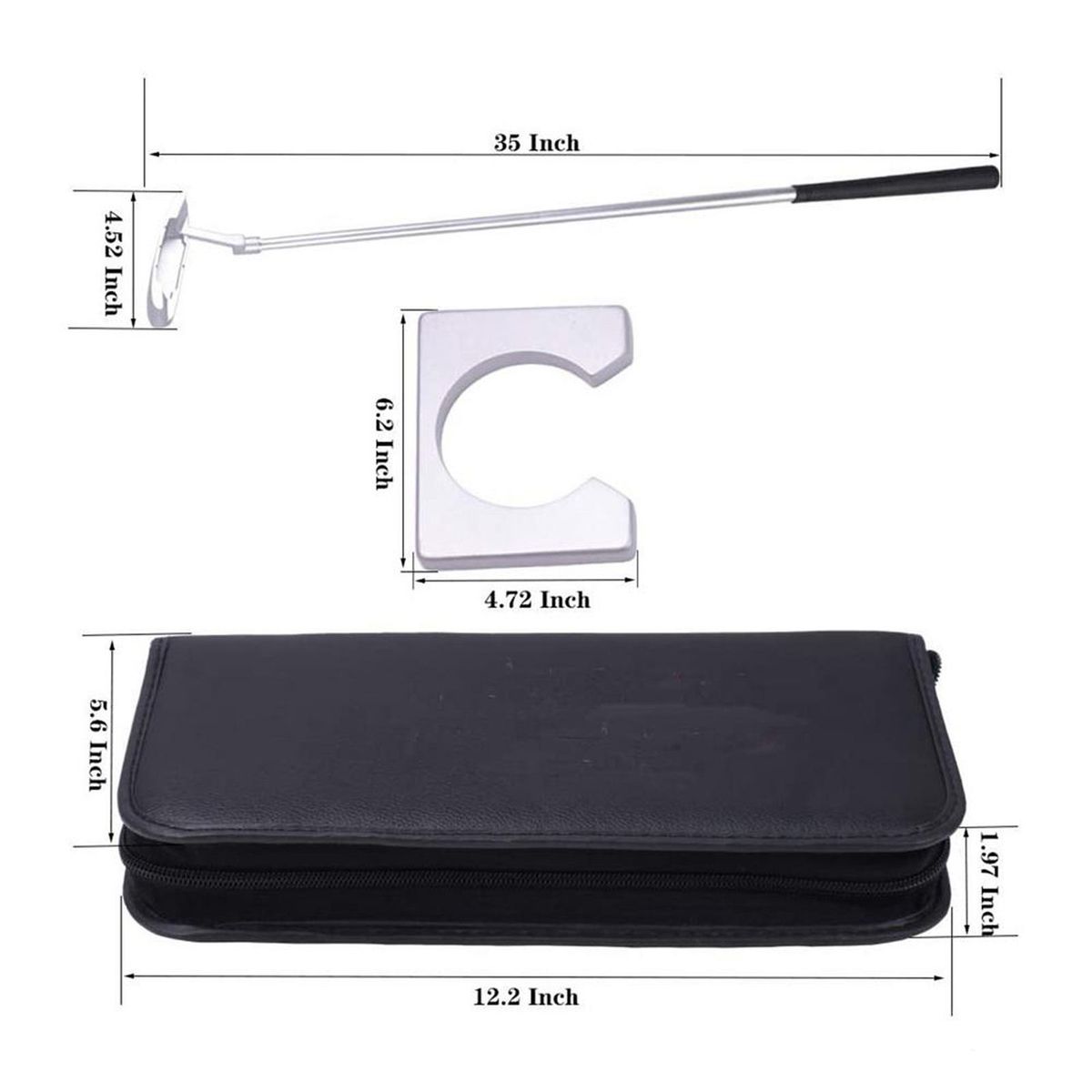 Golf Putter Kit: This Golf Putting Cup includes 1Golf Putter, 1 goal rack, 2 rubber balls and a portable bag.High Quality Materia: The golf body is made of aluminum alloy/wood and head is made of zinc alloy, provides high strength and long service time.Easy to Transport: All items are contained in one compact travelling case, for an easy carry and storage.Improve Skills: Our travel putter set is perfect for indoor putting practice and refining your golf technique. Making each stroke more efficient and effective.Use Application: Greatly use in your office, house, business trip and so on. Makes a great gift for any golf lover.