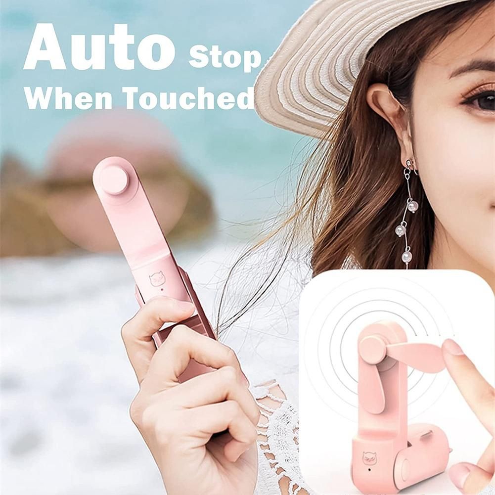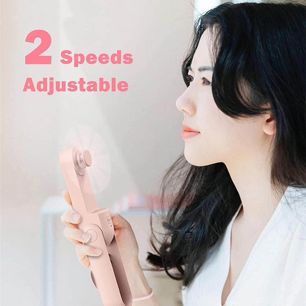 [Foldable Design and Mini Size]The folding design makes it easy to be carried and stored. This rechargeable fan can hide the fan , small and easy to slide into your pocket and purse.