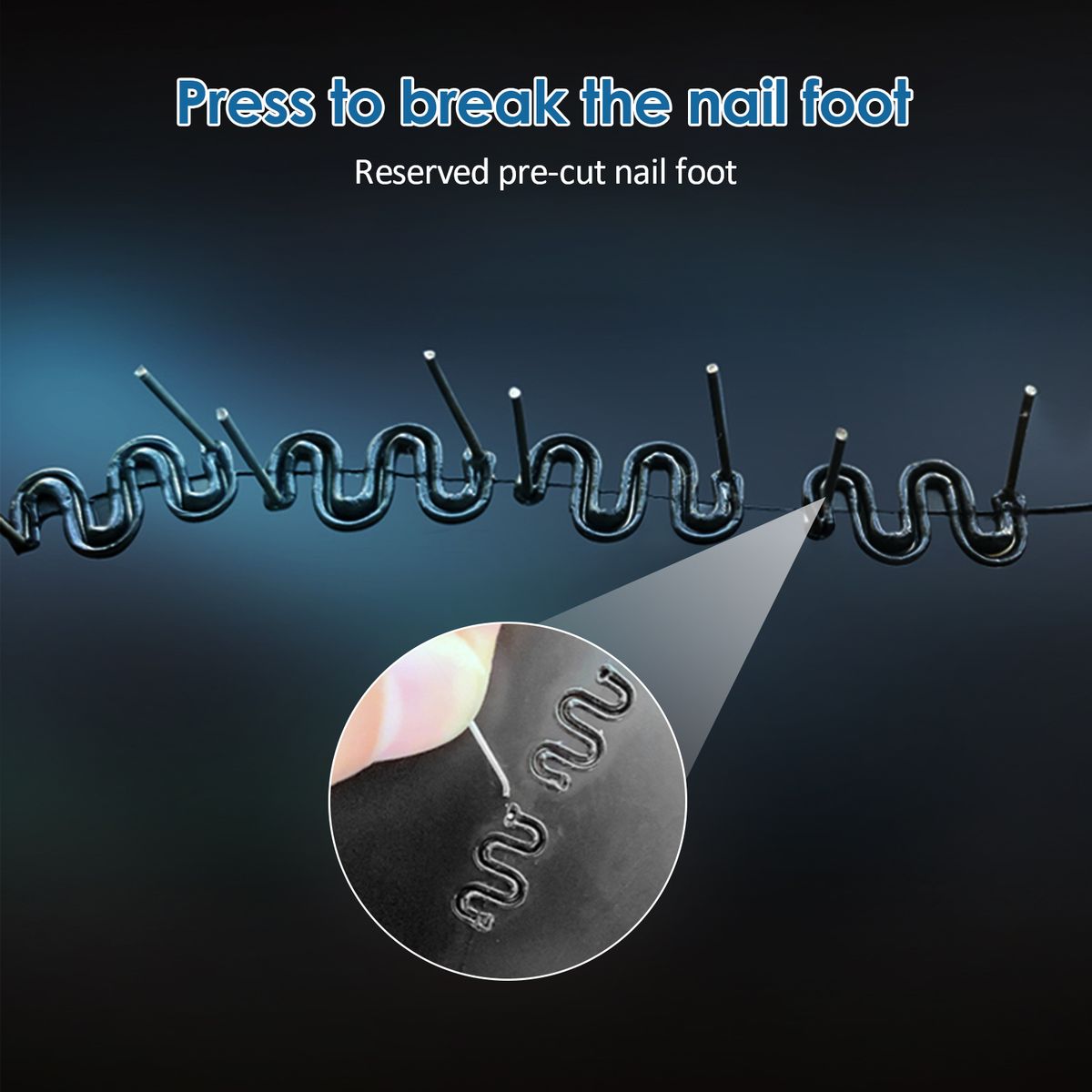 The V-shaped stapling nail can solve the inner corner problem, the M-shaped stapling nail can solve the outer corner problem, and the other two stapling nails can solve the flat surface problems.