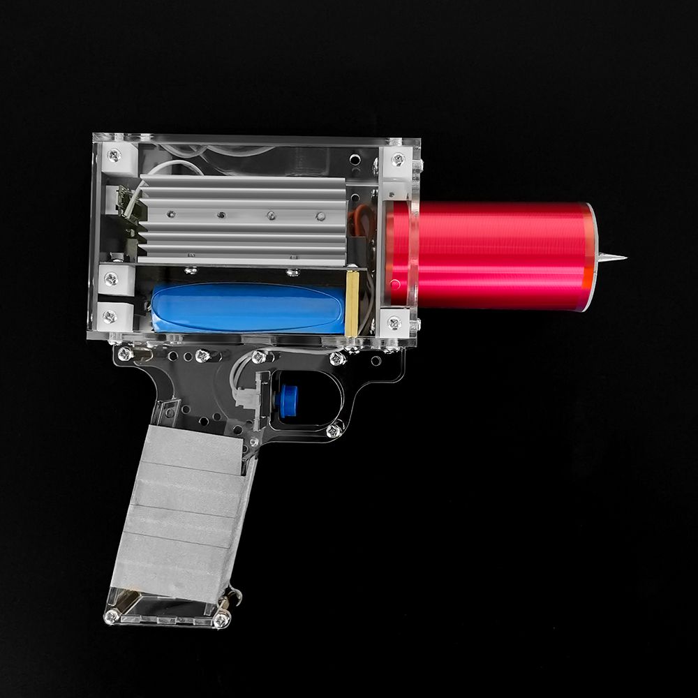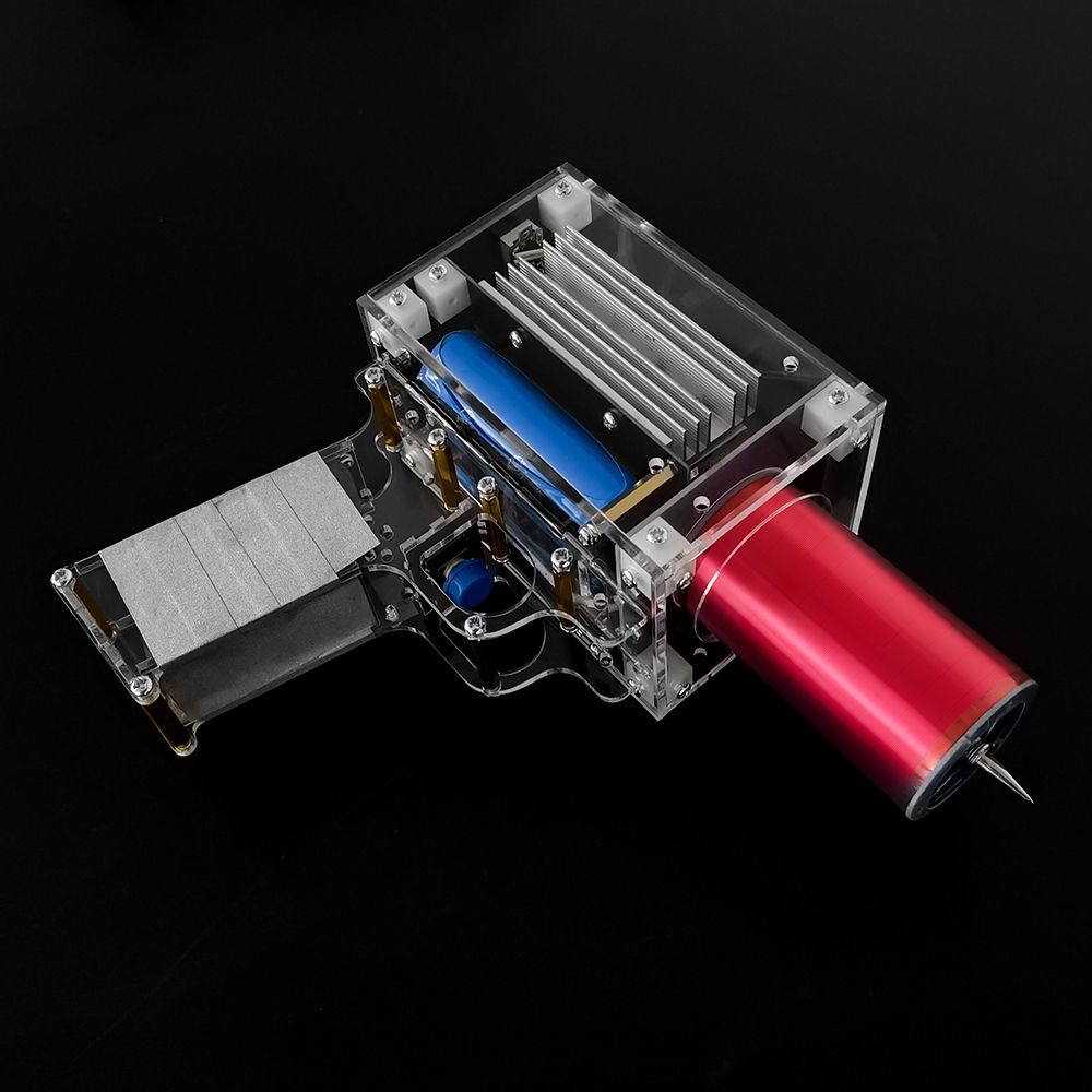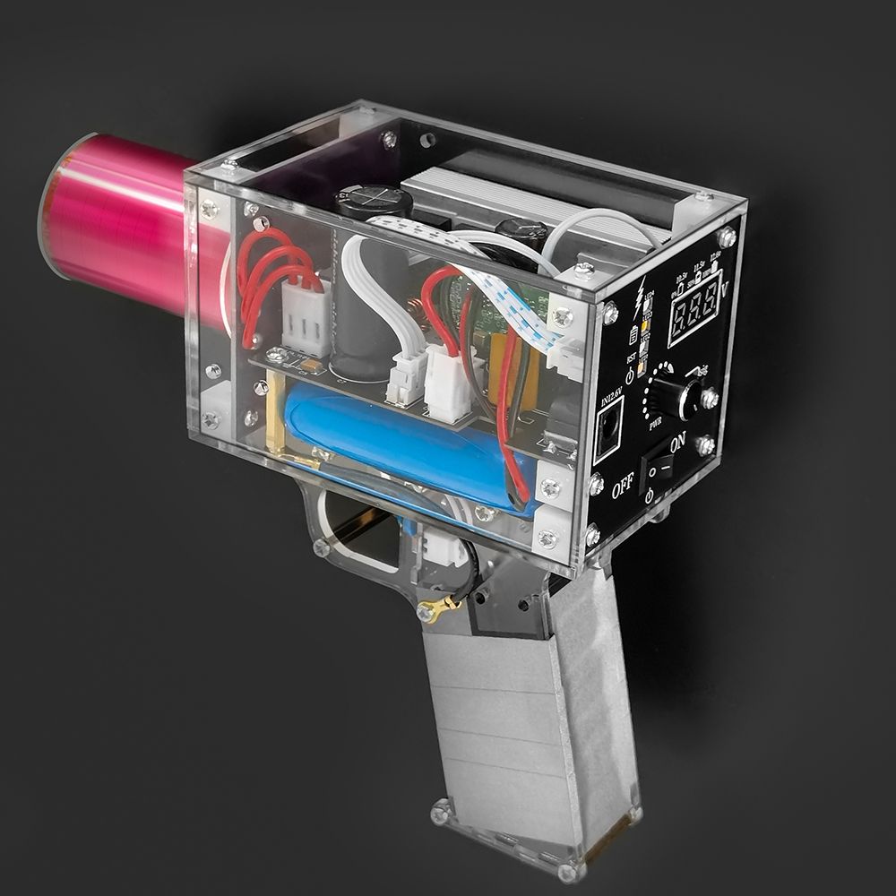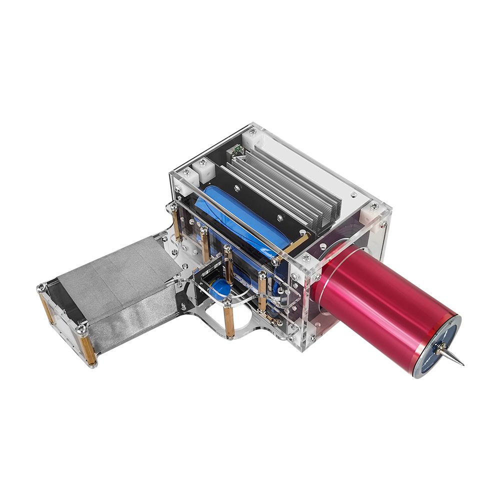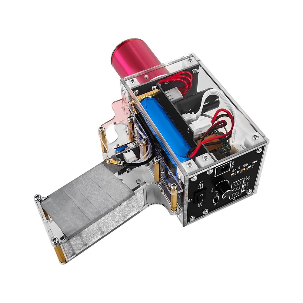 The product is a portable artificiallightning generating device. The surface is fully transparent acrylic sheets, and powered by a 12.6V 2800mAh high-capacity lithium battery, which can produce beautiful artificiallightning with a length of 130mm. (This product adopts the keytype singletrigger mode, and does not have the function of automatic triggering and music playback.)