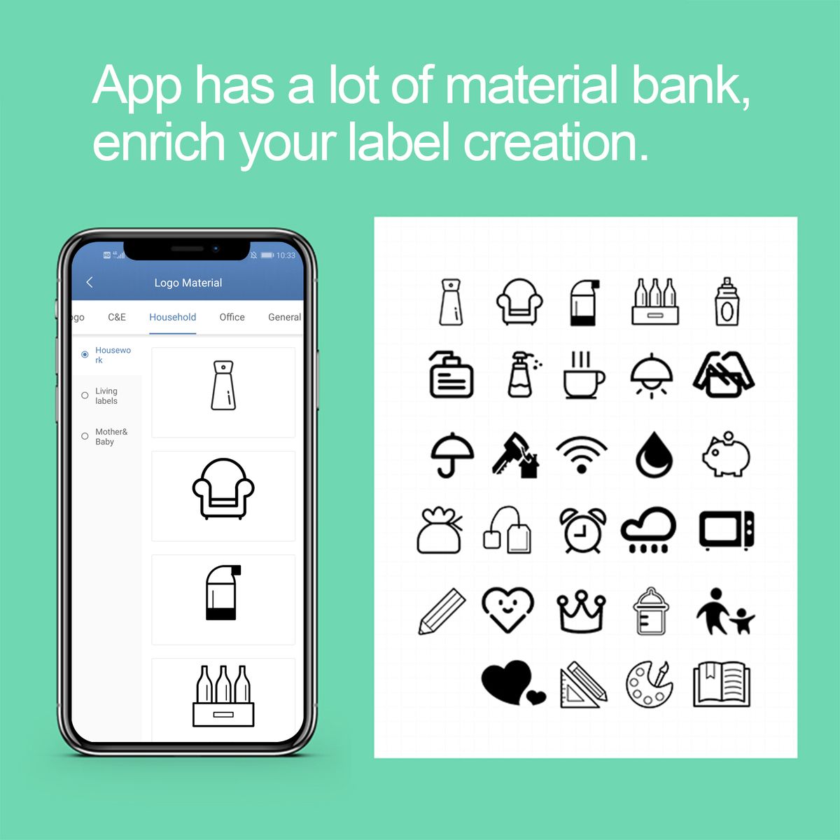 【Free Label Printing】: Label printing is more free, supporting printing of multi-national languages, horizontal version, vertical version, 1D/2D bar code and table printing, etc. App has a lot of material , enrich your label creation.