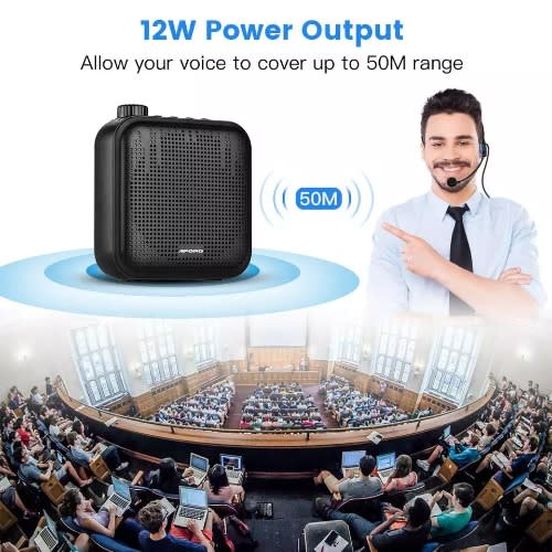 This portable multipurpose voice amplifier enhances the original voice to farther distance for the audience to hear very clearly. It has an inbuilt high capacity speaker that sends out clear and audible sound through the powerful microphone. It is powered by a rechargeable powerful battery.This masterpiece is ideal for classroom teaching, board meetings, church sermon, aerobic and gymnastics practices, public marketing, etc.It is also equiped with usb and tf card ports to play recorded music or any other audio files.Stop stretching your voice amplify it with this product for better audio transmission.Hang the microphone around head or neck and belt the portable speaker around your waist or hang it across your shoulder with the belt, you are done and ready to go. Power it on and descend on the audience with your message.