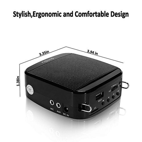 PORTABLE DESIGN: Super powerful voice amplifiers/speakers. Size is 3.94 inch x 3.35 inch x 1.38 inch. Very Easy to carry, suitable for presentations, instructors, gym directors, seniors, tour guides etc..