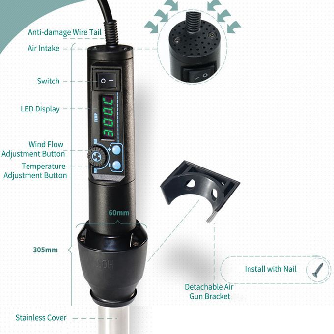 Portable Hot Air With 8 Nozzles Ceramic Heating Core LED