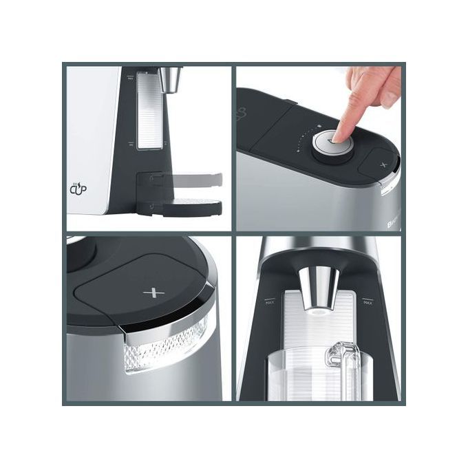 The large tank holds up to 8 cups and thanks to a height-adjustable drip tray, you can fill everything from your brother's comedy over-sized mug to your mum's tiny teacup without ever spilling a drop or creating a splash. Meanwhile, a stylish design complements the modern kitchen. Enjoying delicious hot drinks has never been simpler.