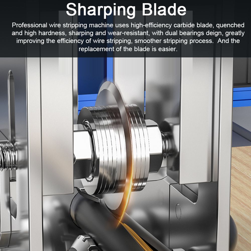 【Sharping 】: Professional wire stripping machine uses high-efficiency carbide , quenched and high hardness, sharping and wear-resistant, with dual bearings deign, greatly improving the efficiency of wire stripping, smoother stripping process. And the replacement of the is easier.