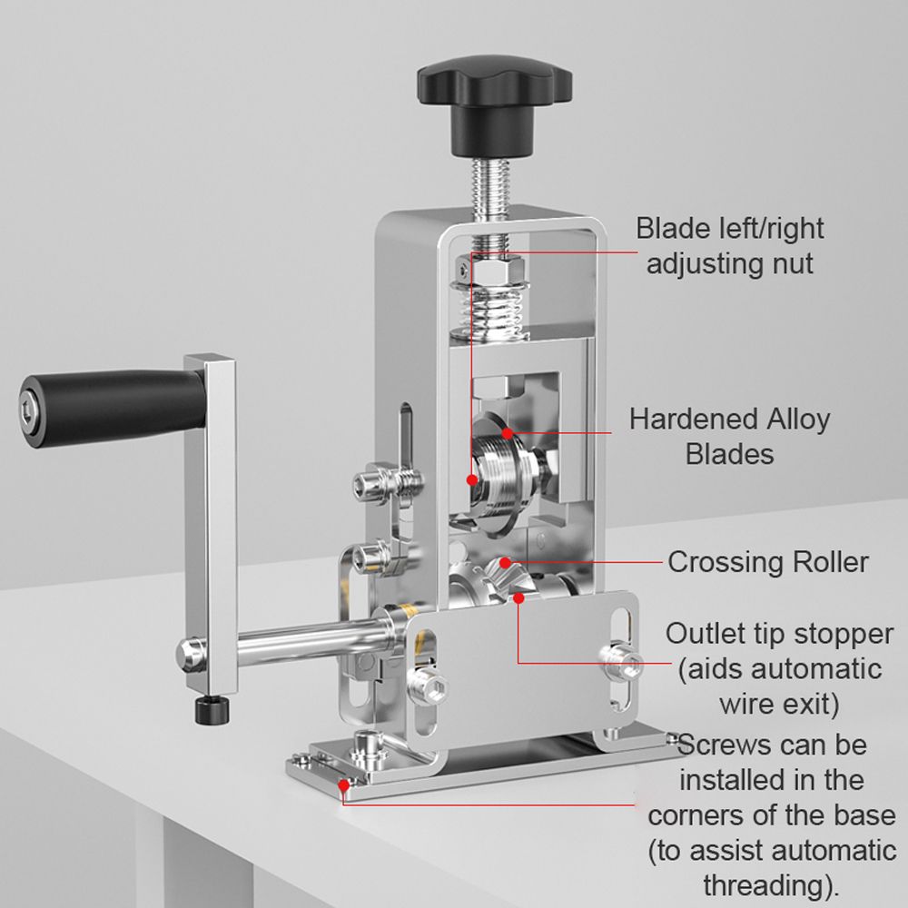 【Easy to Use】: After placing the wire, adjust the knob to clamp the to the wire and pull the wire to move it past the wire feed wheel. After passing through the stripping machine, the outer skin of the wire is stripped and the core can be removed. Multi-hole feeder plate, convenient for different thickness of cables.