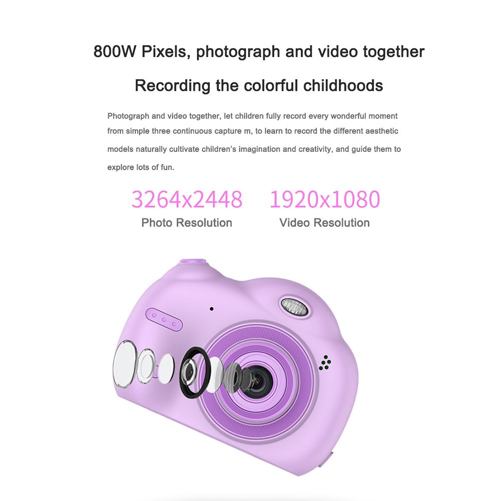 The children camera is mini size and lightweight, quick and easy maneuverability. 2.4in IPS large screen, 1080P dual lens and built-in flash. Multi-function, intelligent identification of focus, colour modulation and white balance. Support video recording and photo taking. Large capacity cell, intelligent impetus saving, long endurance.
