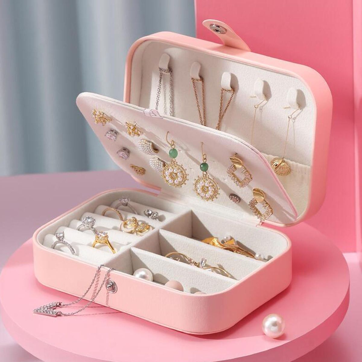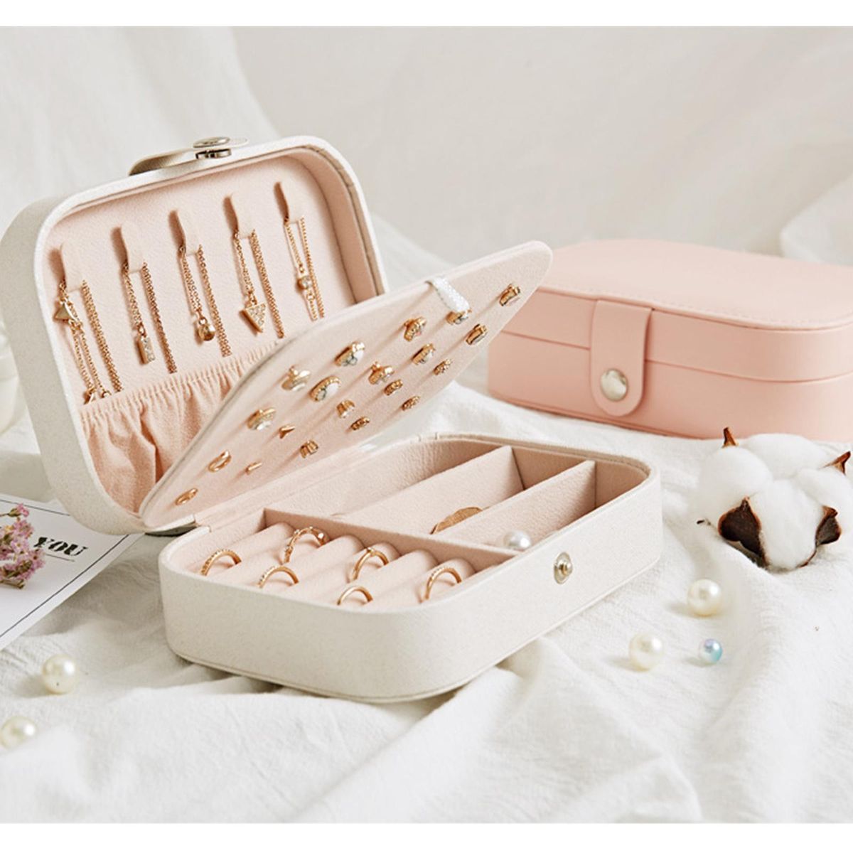 The storage box is suitable for all kinds of rings and small earrings.