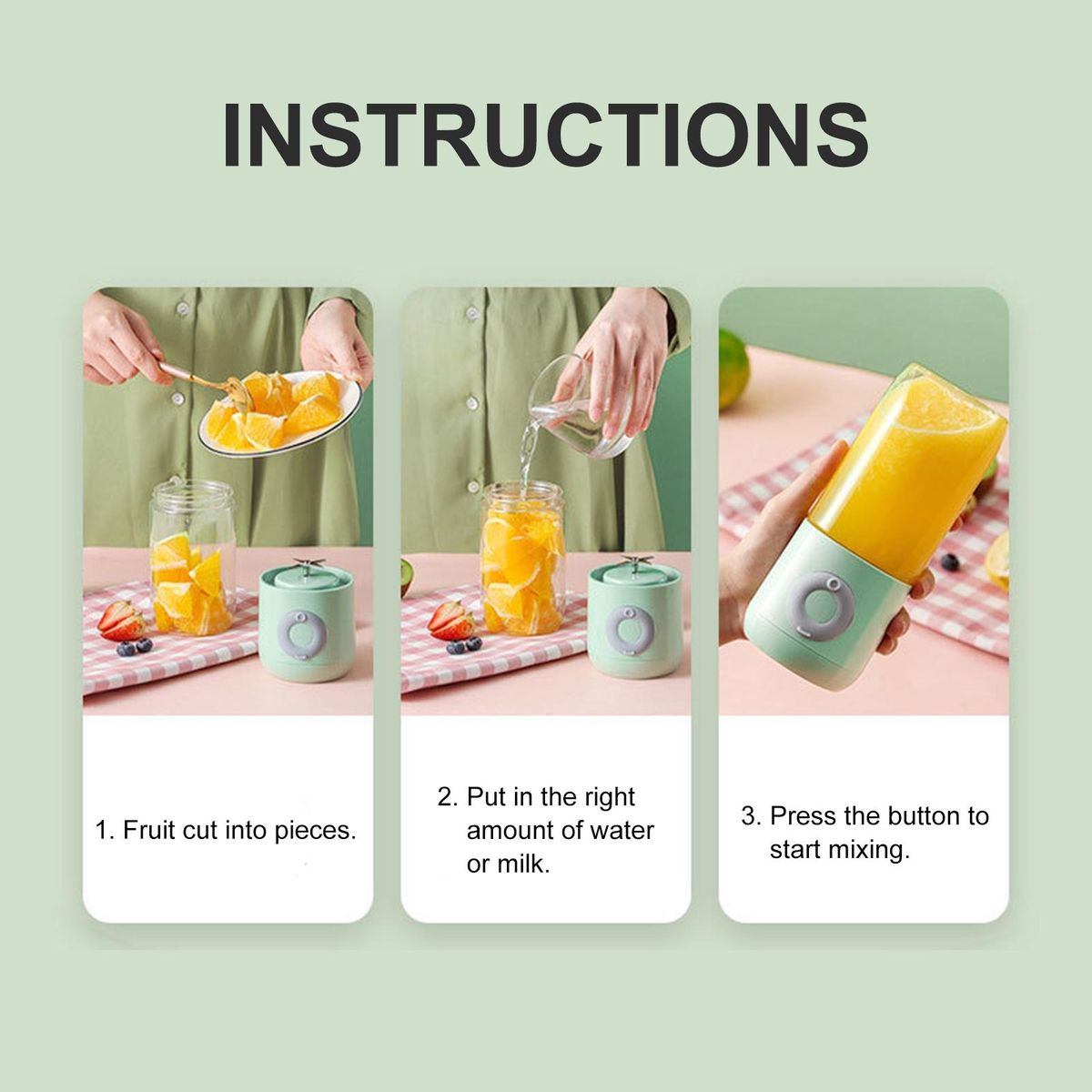 Owing to the wireless, rechargeable and compact size of this electric juicer, it is portable and can be used in most occasions in daily life.