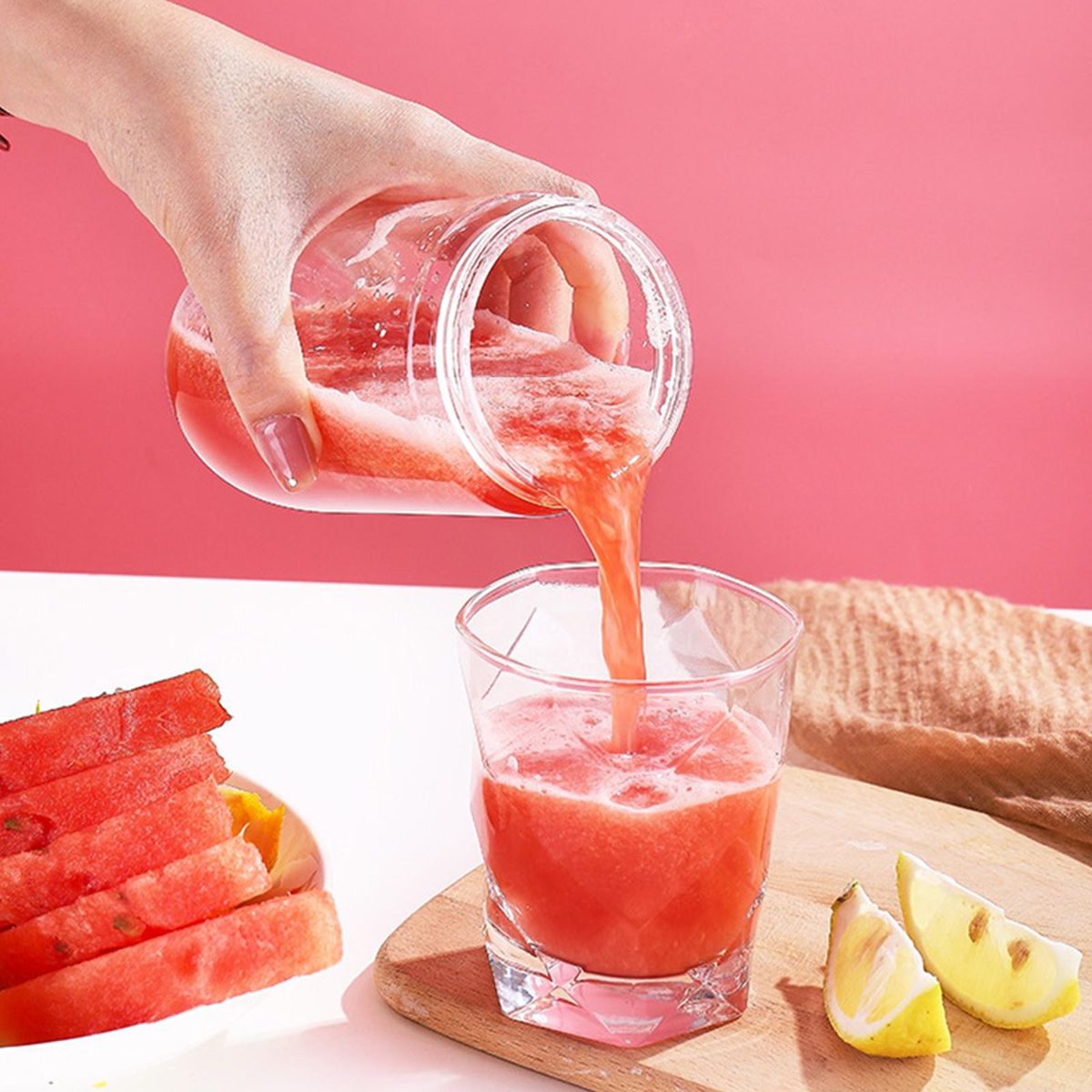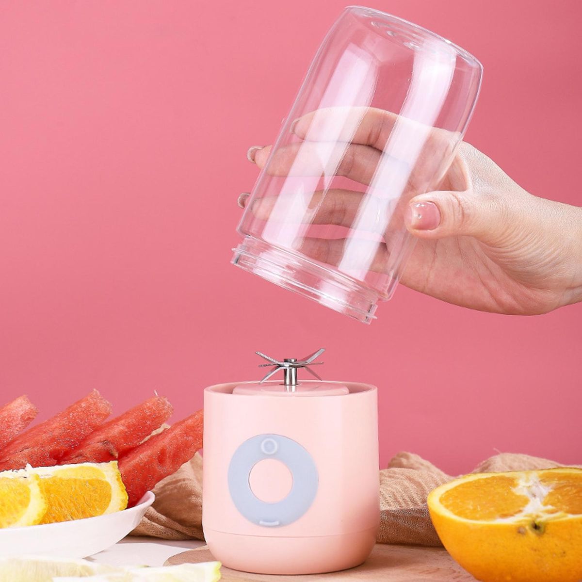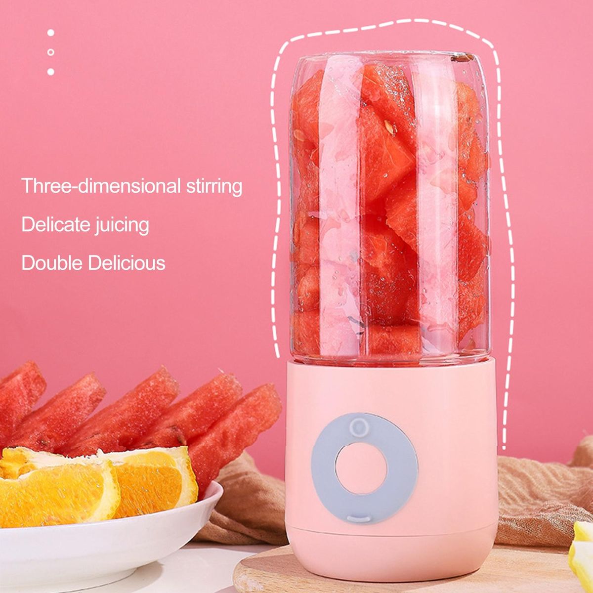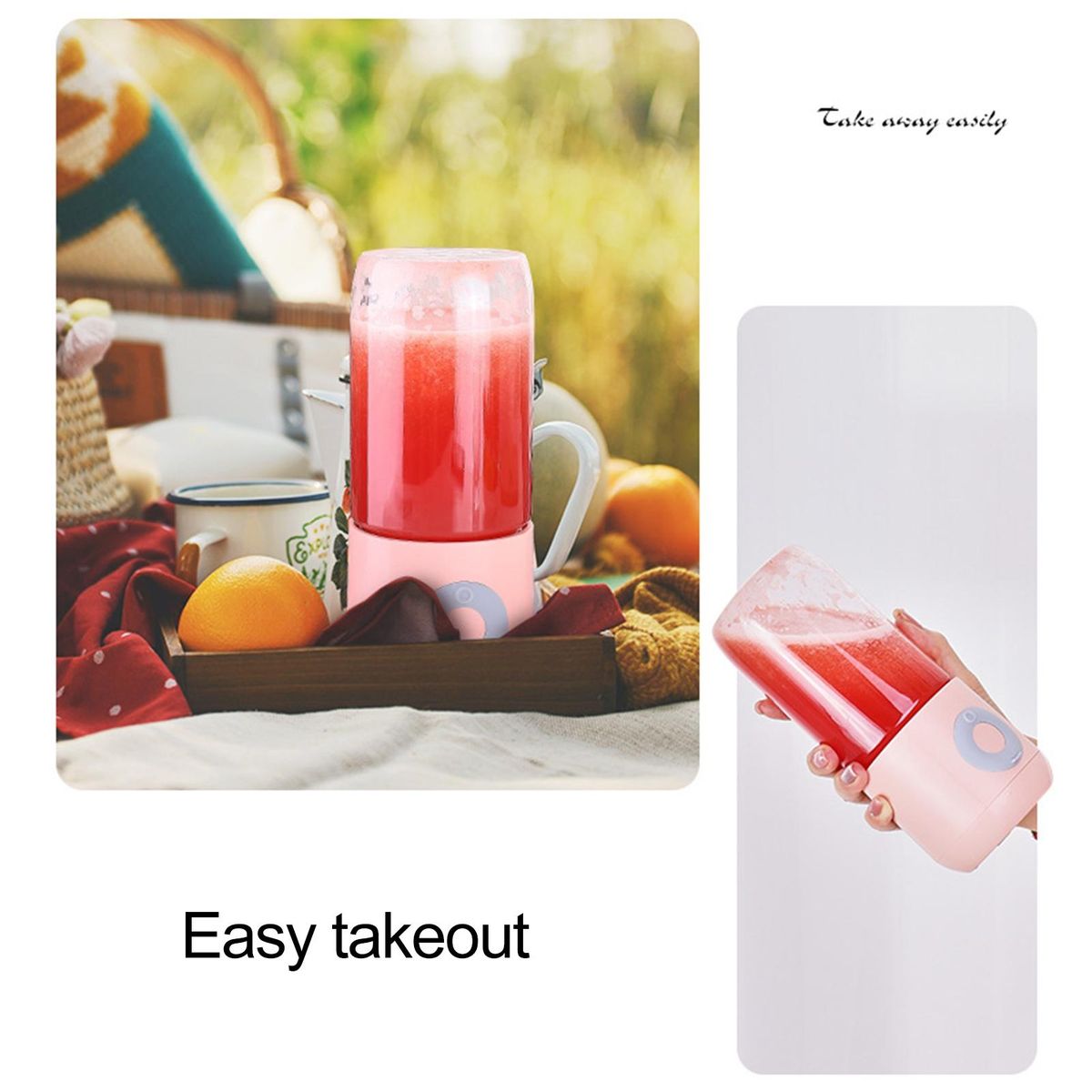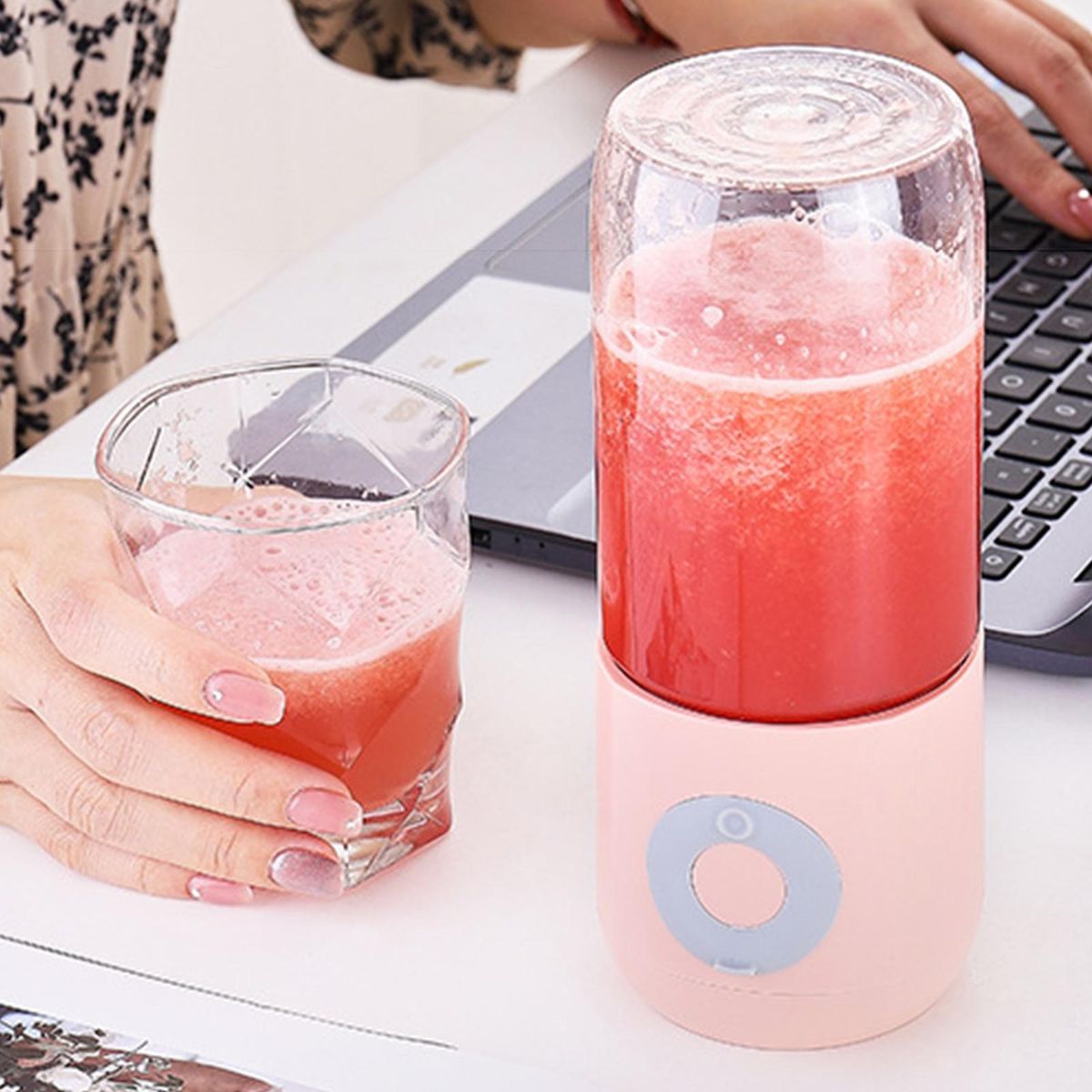 Owing to the wireless, rechargeable and compact size of this electric juicer, it is portable and can be used in most occasions in daily life.