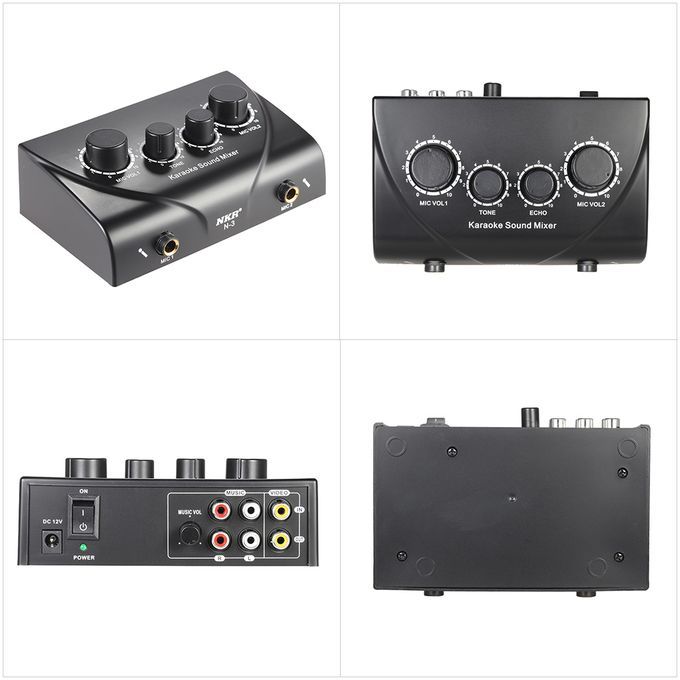 Dual microphone inputs, and supports mic volume adjusting individually.
