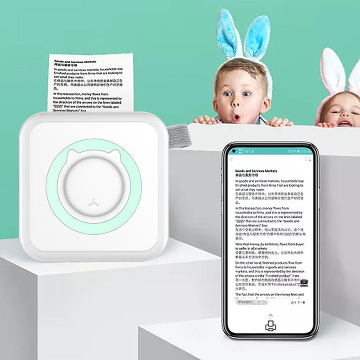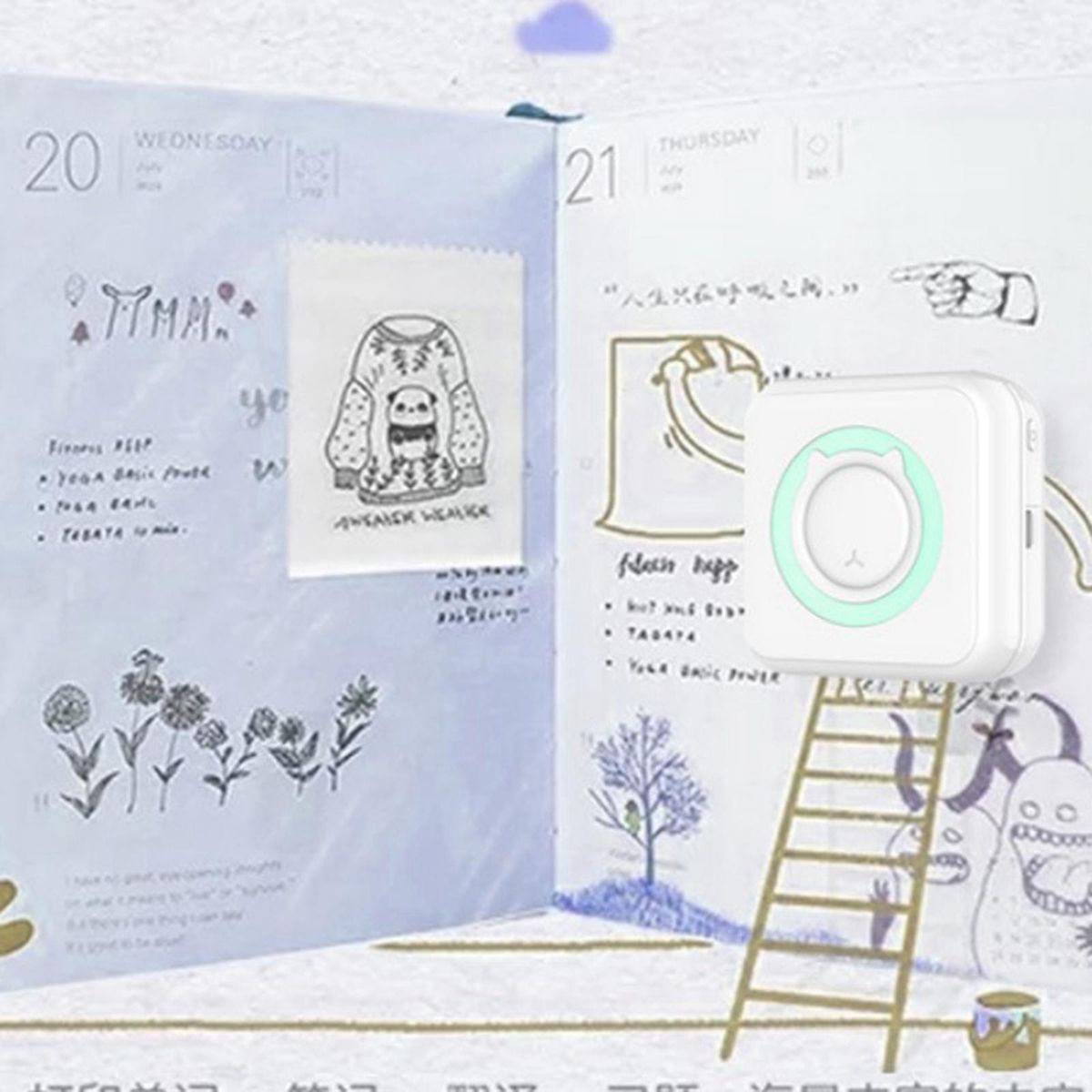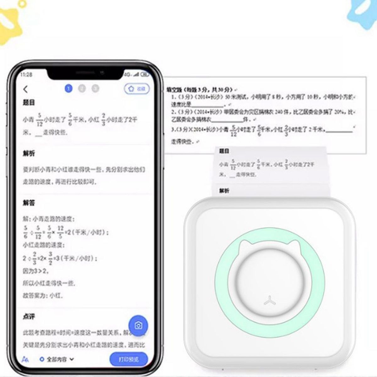 Thermal Printer: Printer with 200dpi high resolution printing head, can print 57mm(width)x25mm(roll diameter) thermal paper. Outstanding printing quality.Multiple functions, can print photos, labels, messages, lists, records, , web printing and so on. Built-in 1000mAh rechargeable batterys, working in low noise, the thermal printer does not when using, low operation cost.Record your life, print the scenery you see, record his or her , collect the exercises you have done wrong, fun and practical. lightweight, can in your pocket or bag. You to take this printer anywhere and use it anytime.Cute appearance and excellent printing performance, perfect gift for students, office workers and your friends.