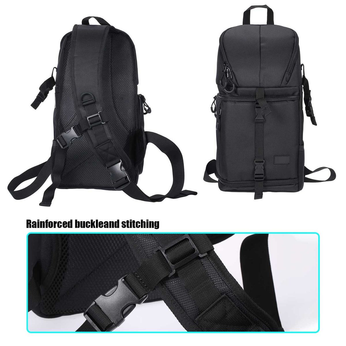 Safe lastics buckle, which can be adjustable to fit for most photographers.