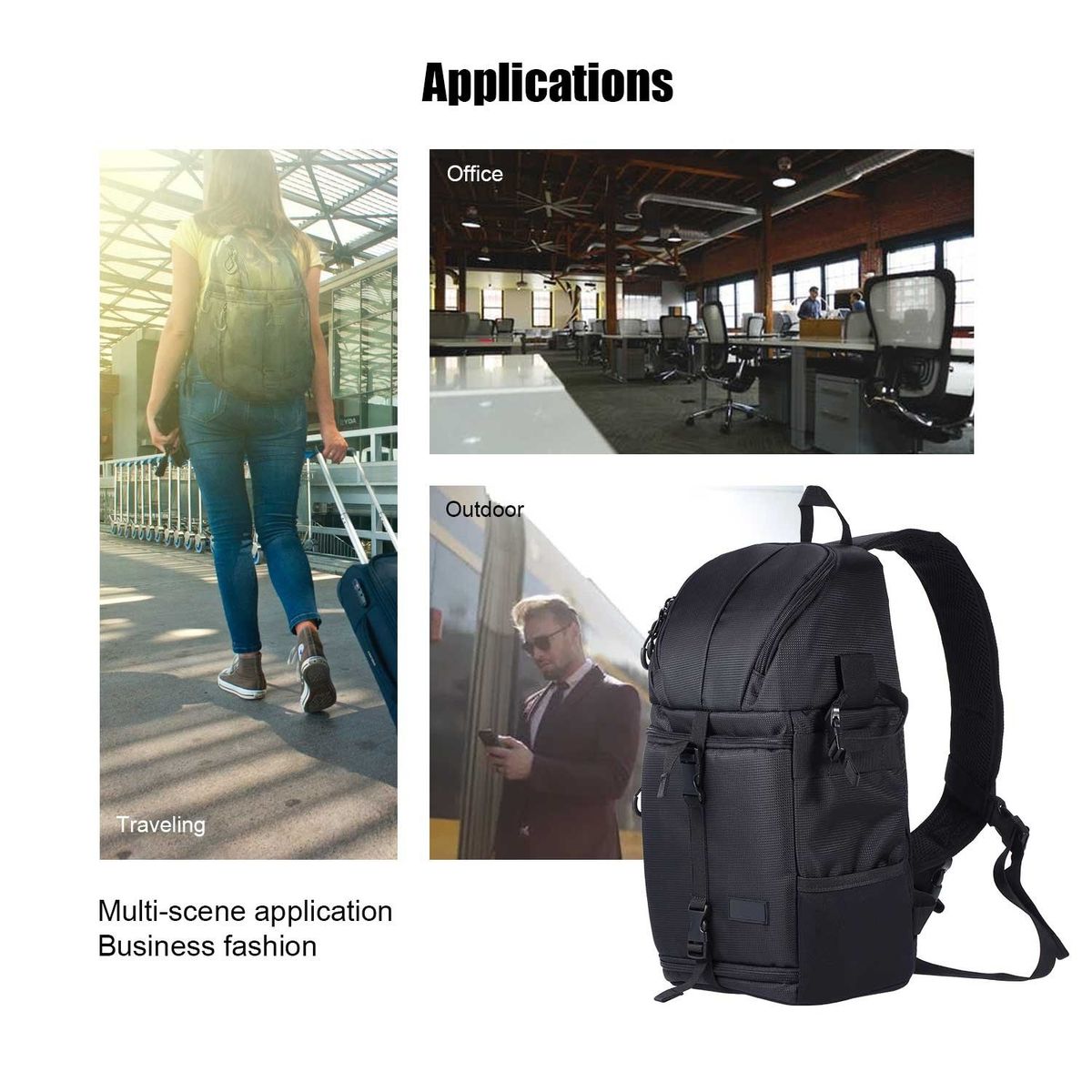 High-end color matching, superior waterproof material, multi-function pocket design, large capacity inner space, independent camera pocket, delicate craft anti-rust fittings, make your travel become more simpler and enjoyable.
